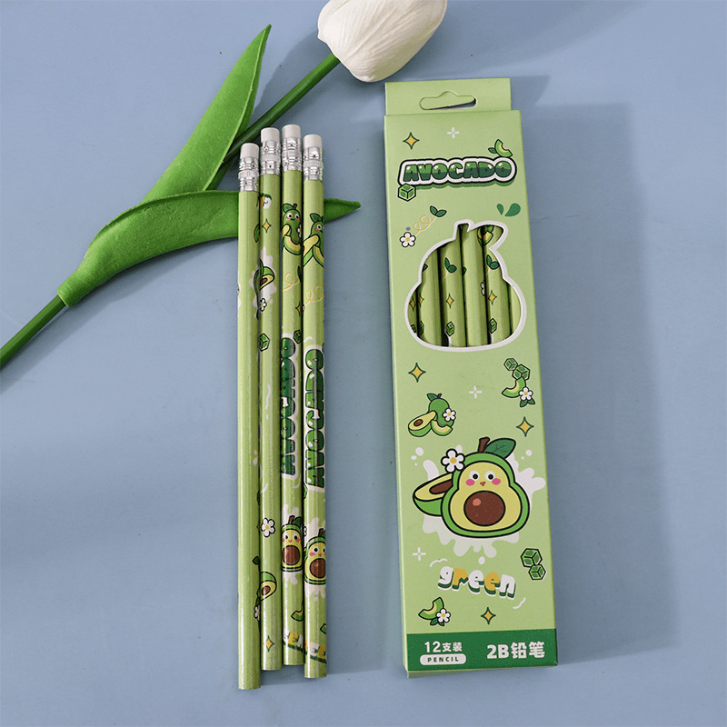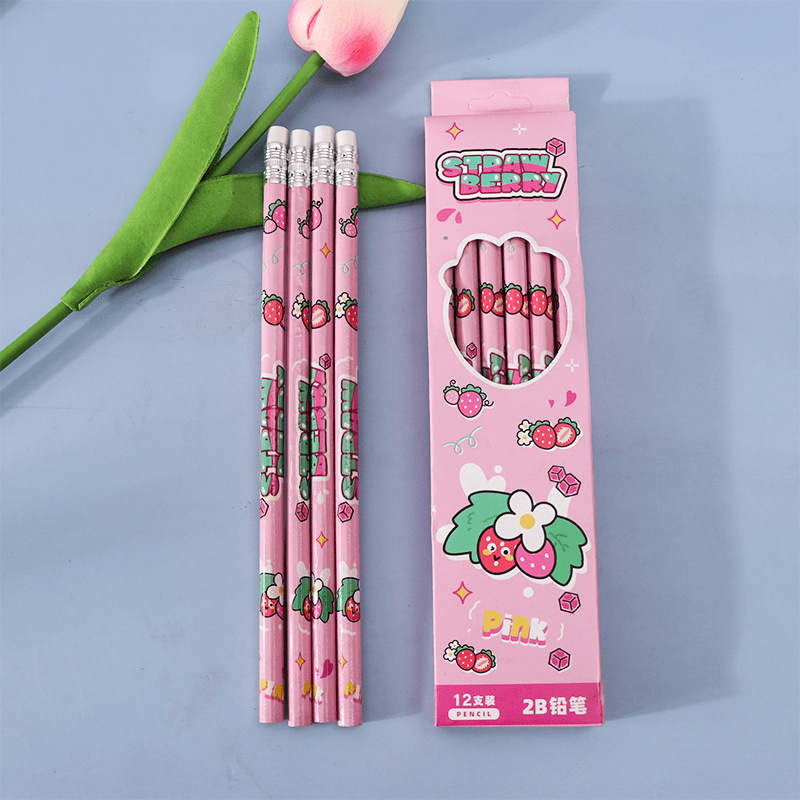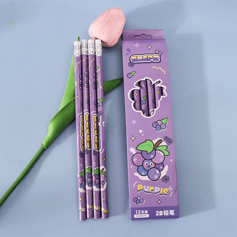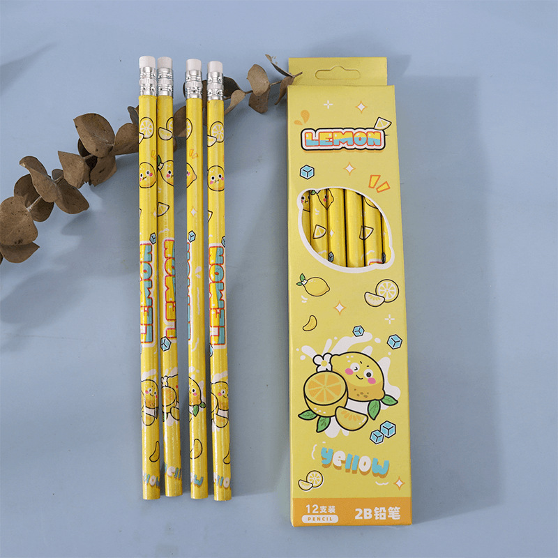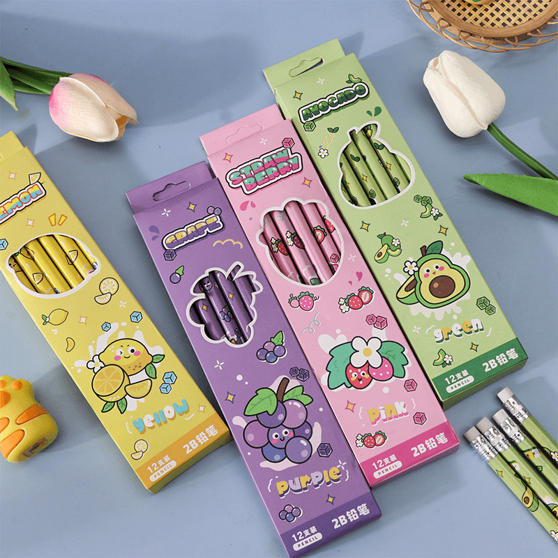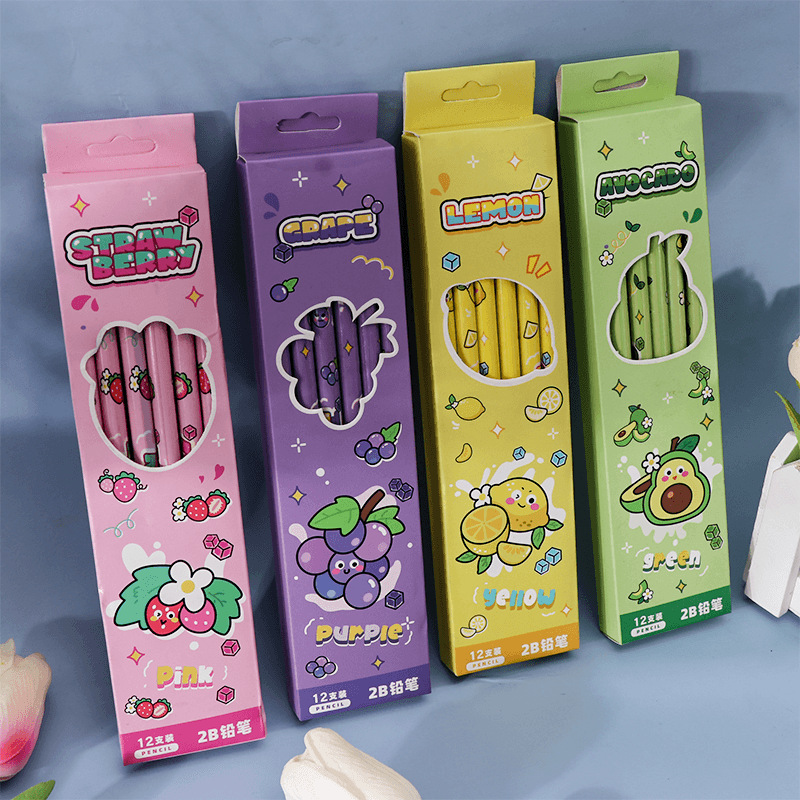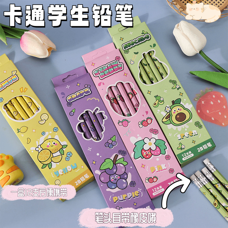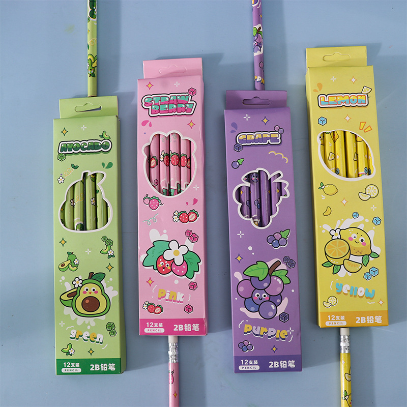 Cartoon Fruit Student Pencil 2B Pencil Suit 12 PCs a Box of Only for Pupils Stationery High Quality Writing Pen 中文版