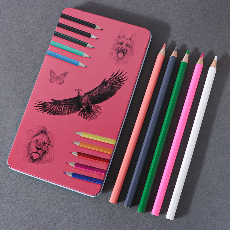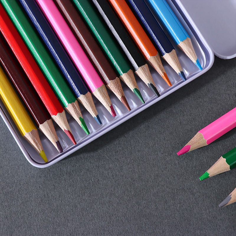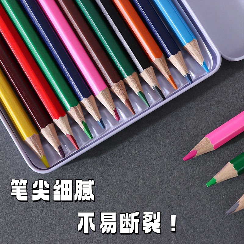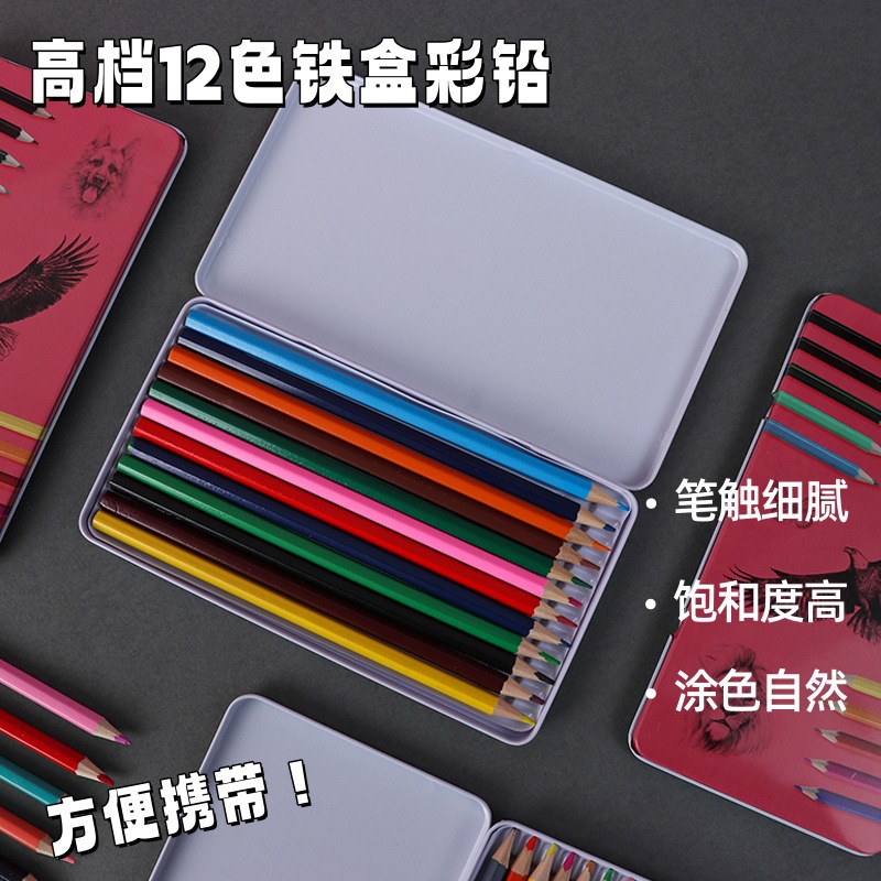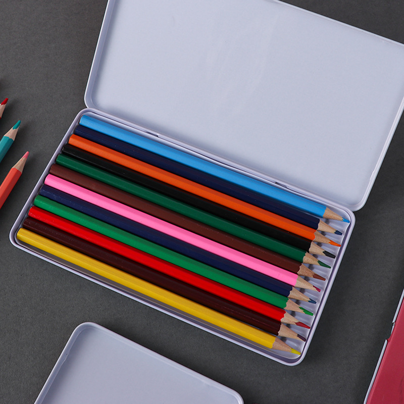 High-Grade Iron Box 12 Color Pencil Only for Pupils Painting Factory Wholesale 12 Color Lead Color Art Supplies 中文版