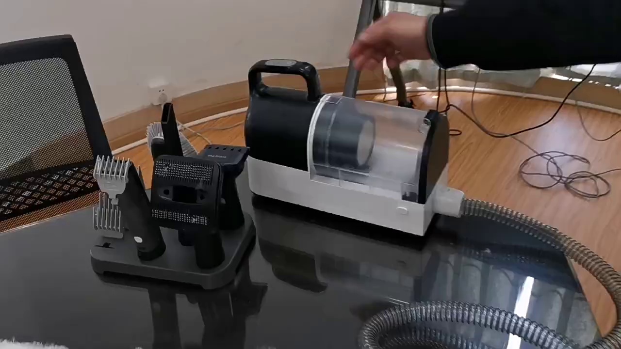 Accessories: 1.5m hose * 1, electric clipper * 1 (includes battery pack), grooming comb * 1, thinning comb * 1, cleaning brush * 1, suction tube * 1, base * 1.