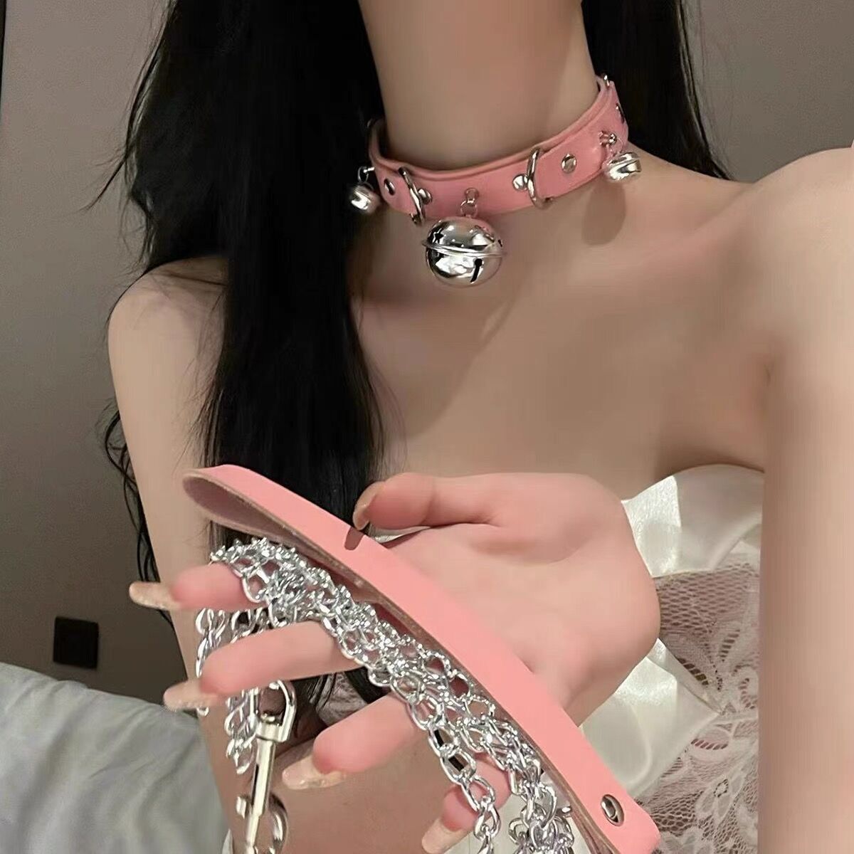white collar + pink hand holding rope
