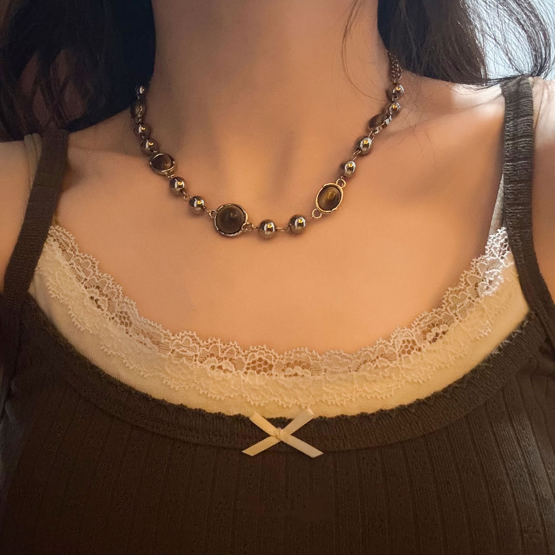 brown tiger eye necklace (xl1388)