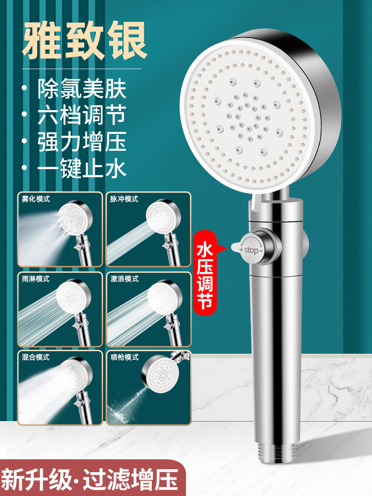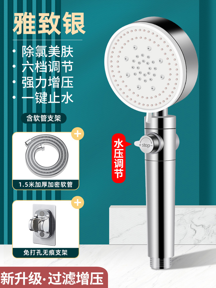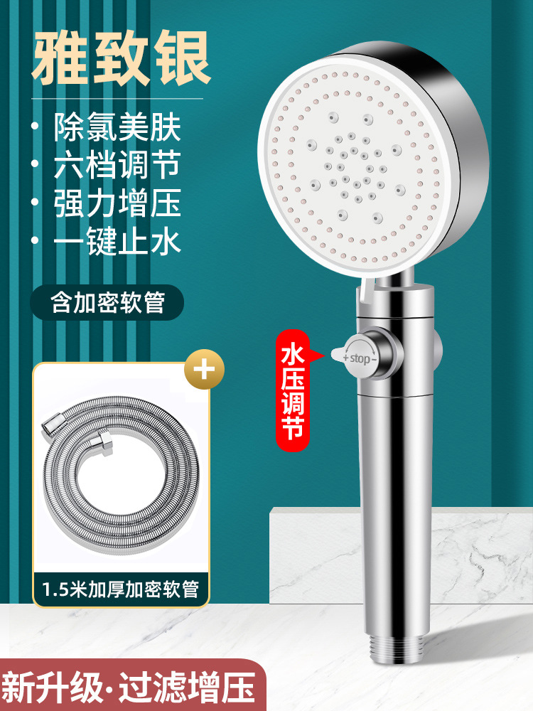 [silver chlorine removal suit 1] 6-speed supercharged chlorine removal shower +1.5 m hose