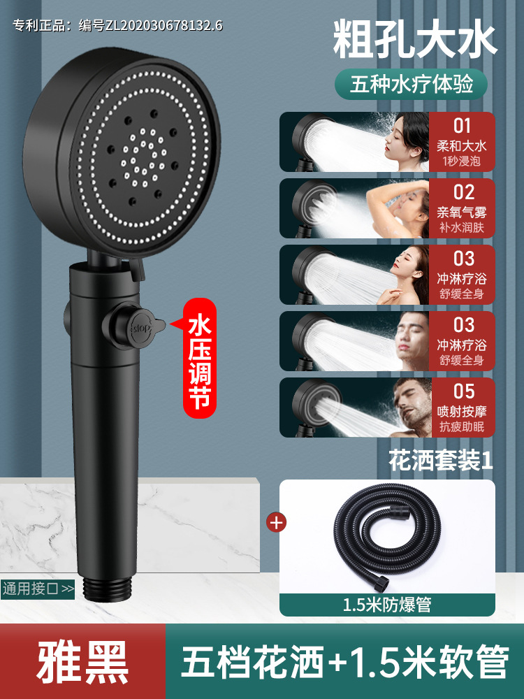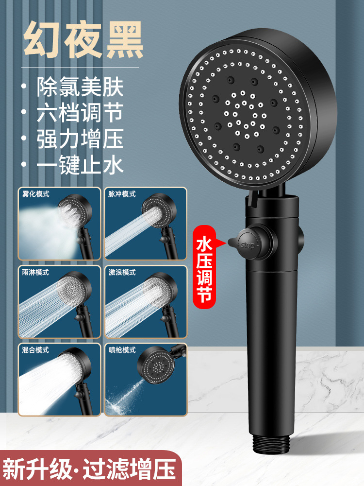 [black chlorine removal suit 1] 6-speed supercharged chlorine removal shower +1.5 m hose