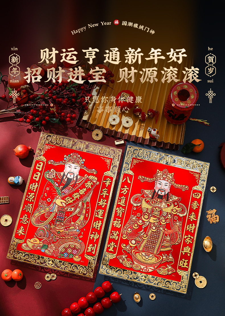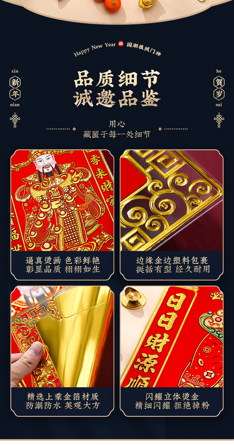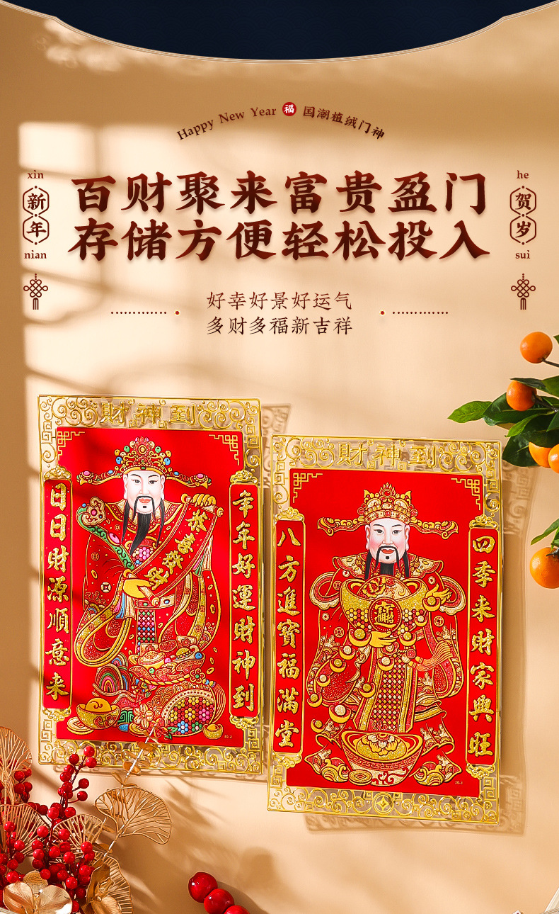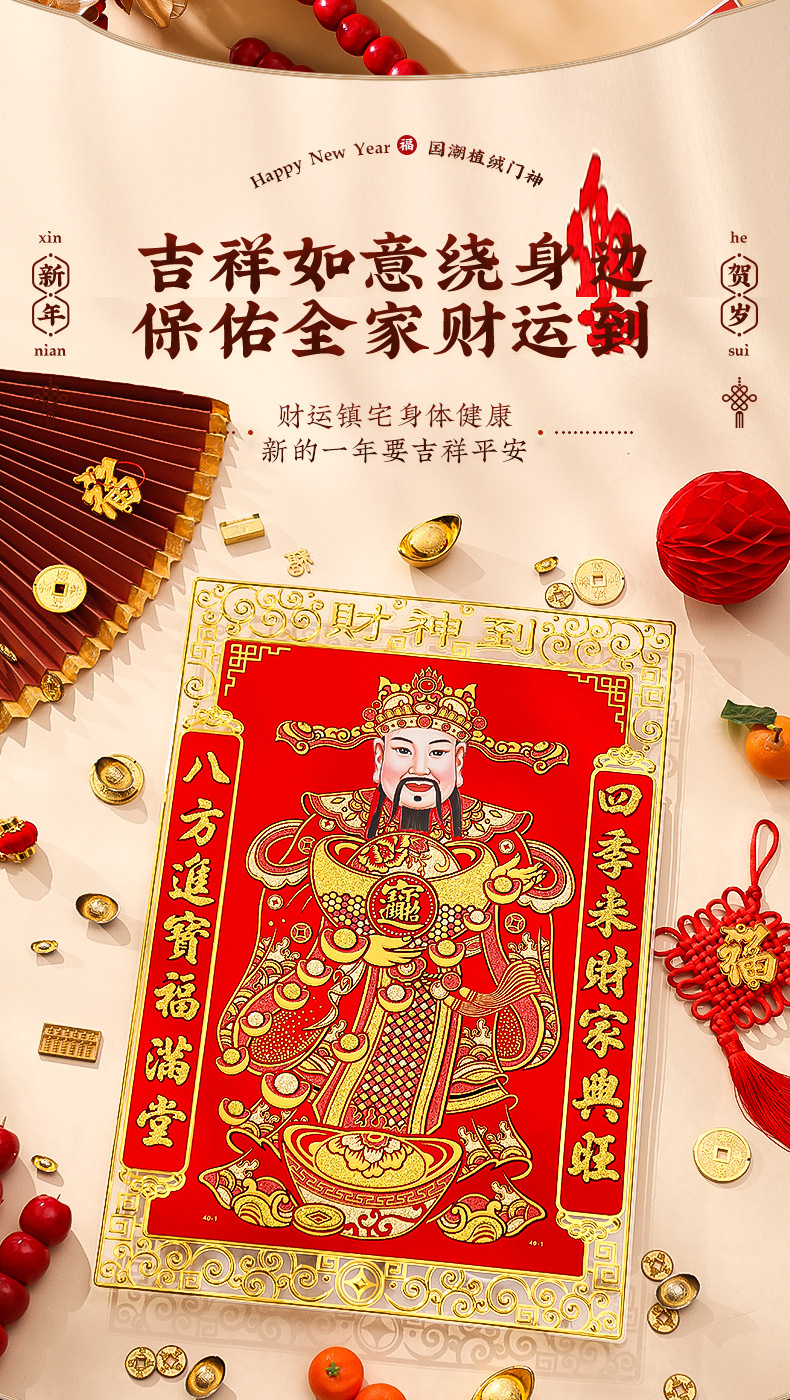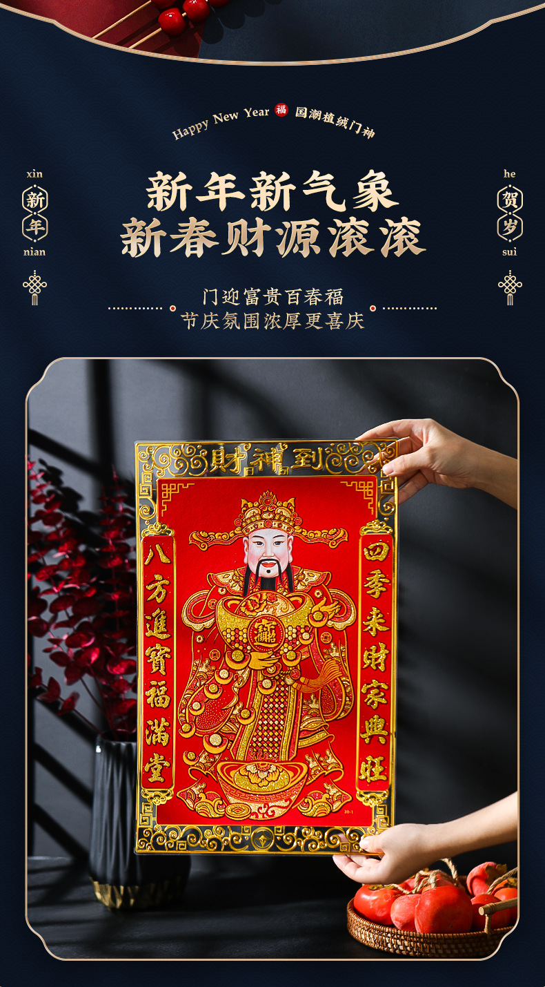 New Year 2024 Dragon Year God of Wealth Decorative Painting Wall Facing Fortune Character Door God Sticker Home Use Hanging Wall Spring Festival New Year Painting Door God 2024 Dragon Year Flocked Full Hot Gold Door God New Year Couplets Fortune Character Door Sticker New Year Painting Factory Wholesale