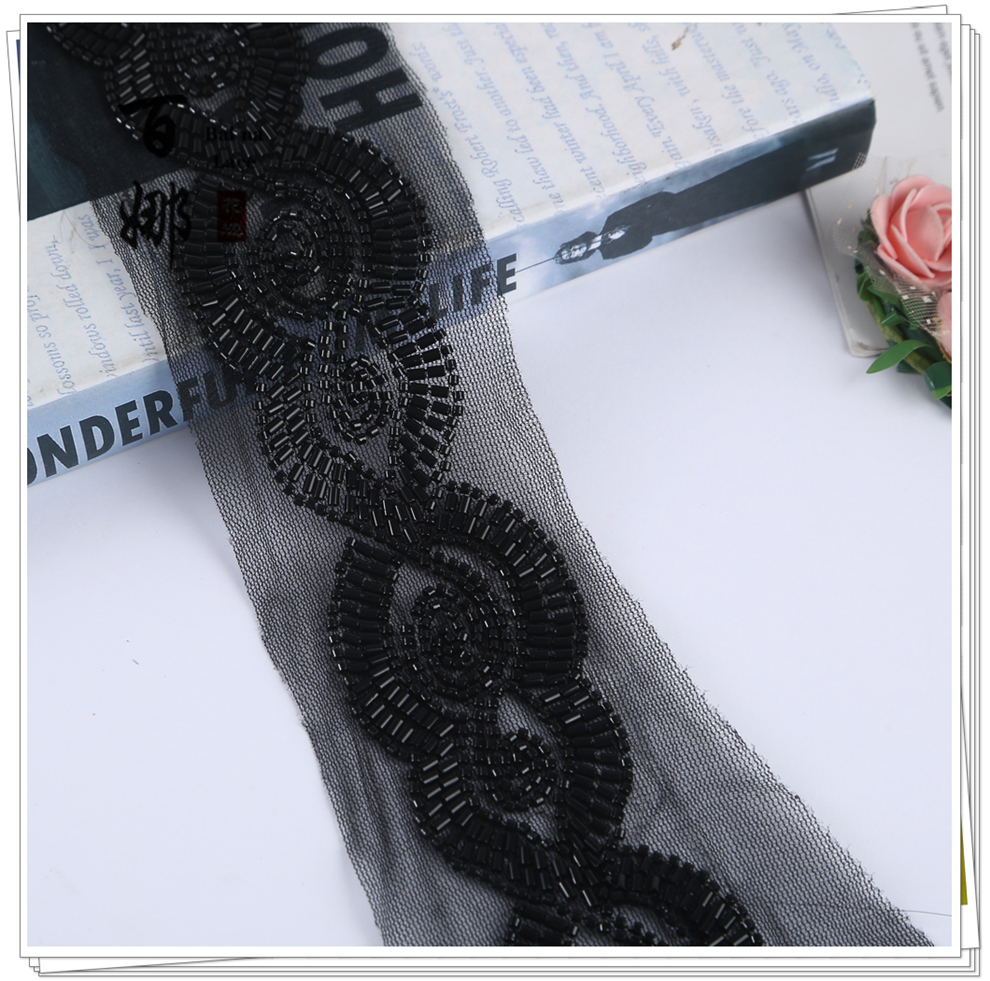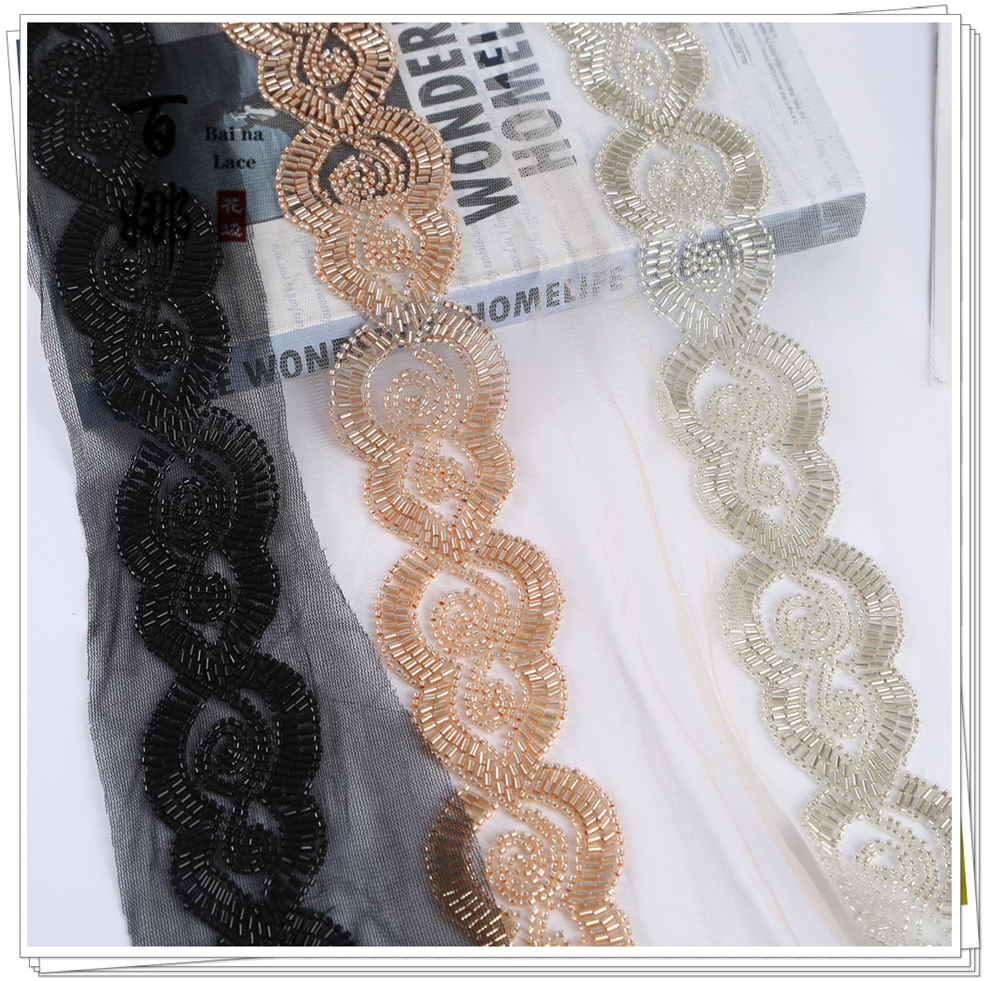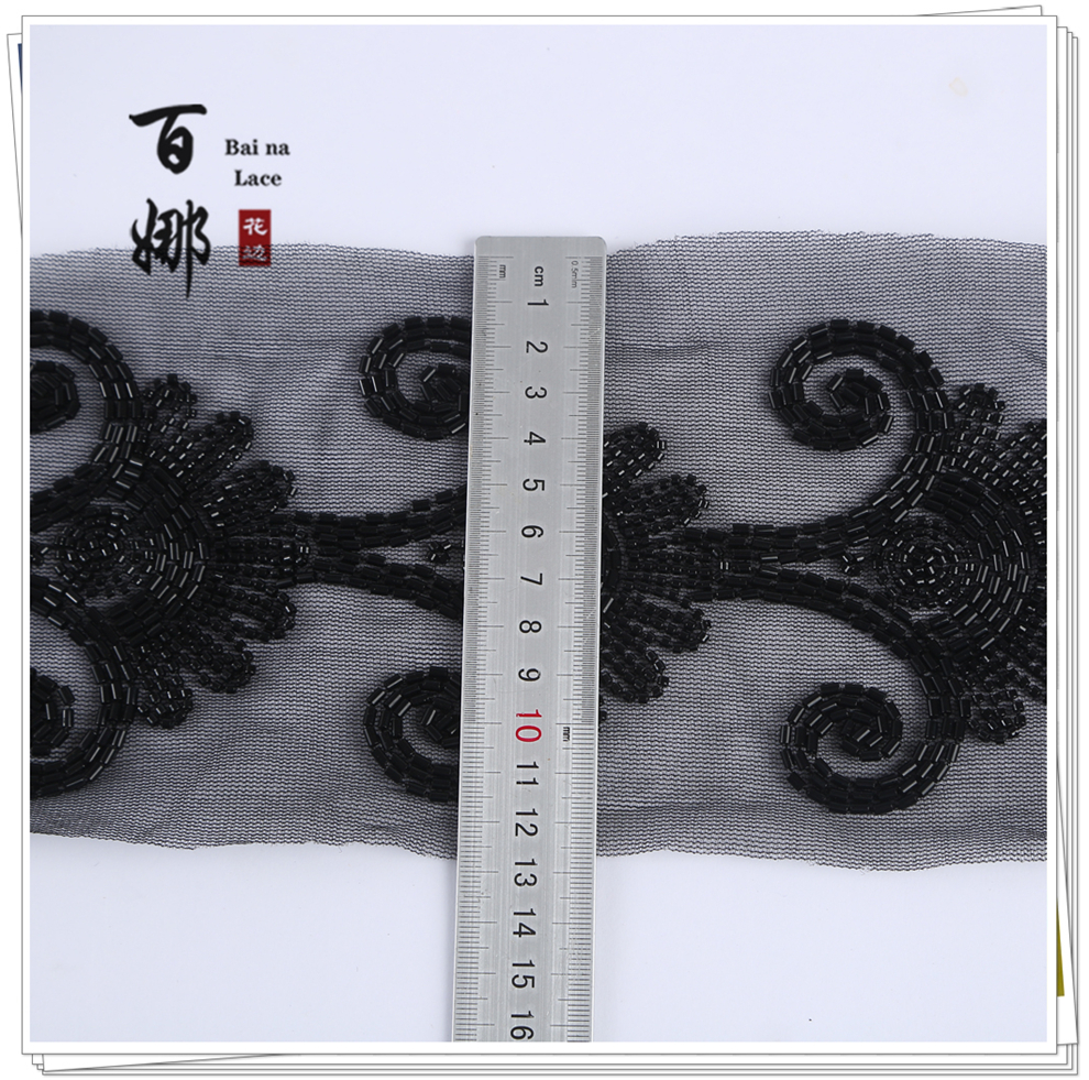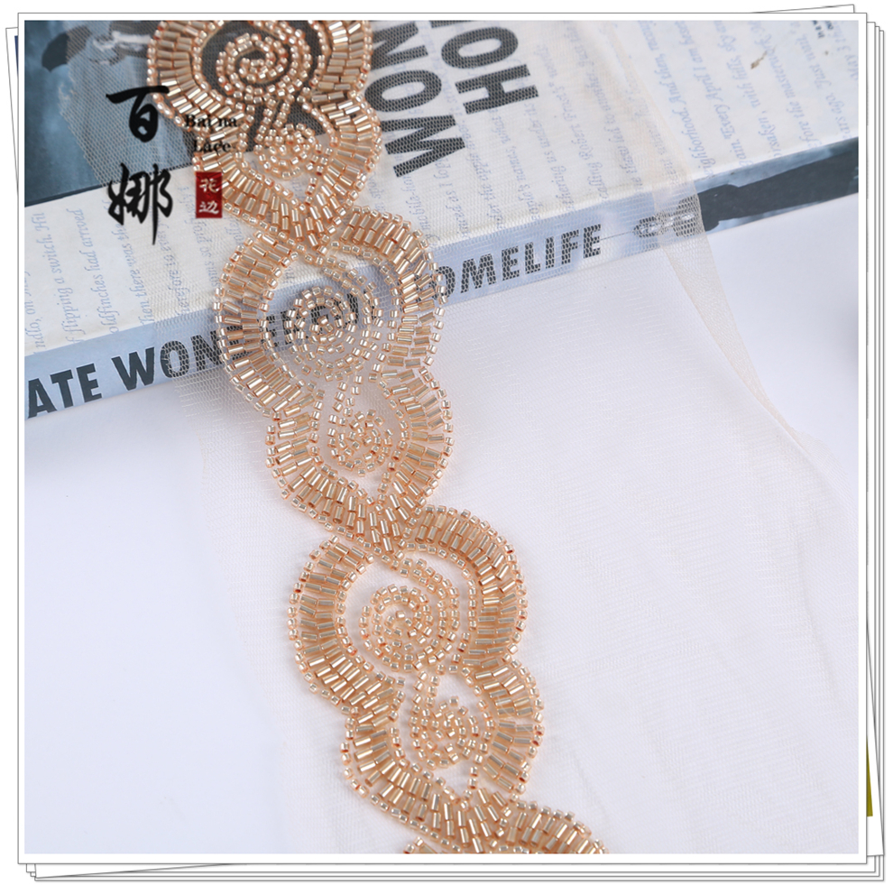 Product Name: 10cm Wide Beaded Pipe with Dense Lace Weaving - Wholesale of Garment and Wedding Dress Decorative Netting Lace Trim