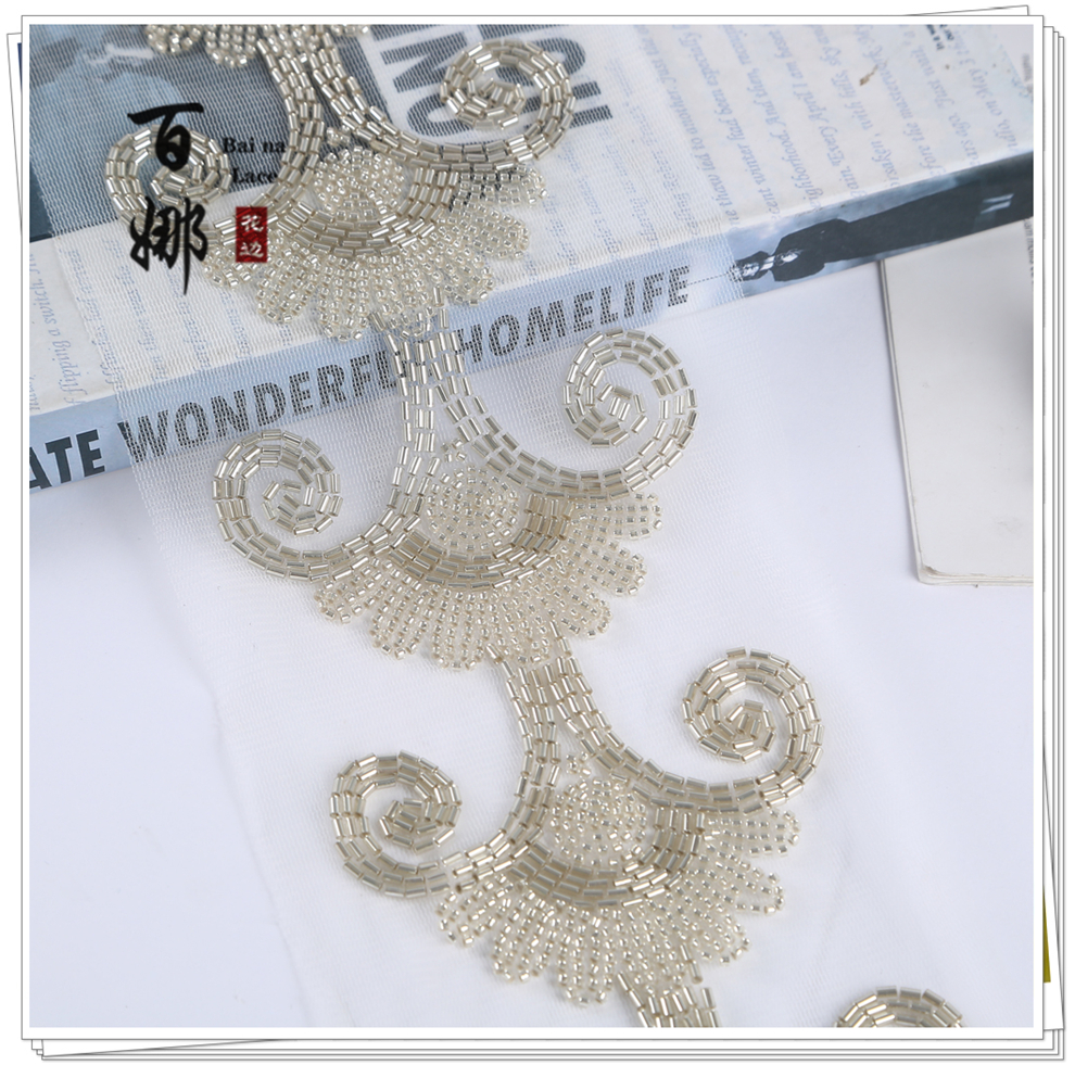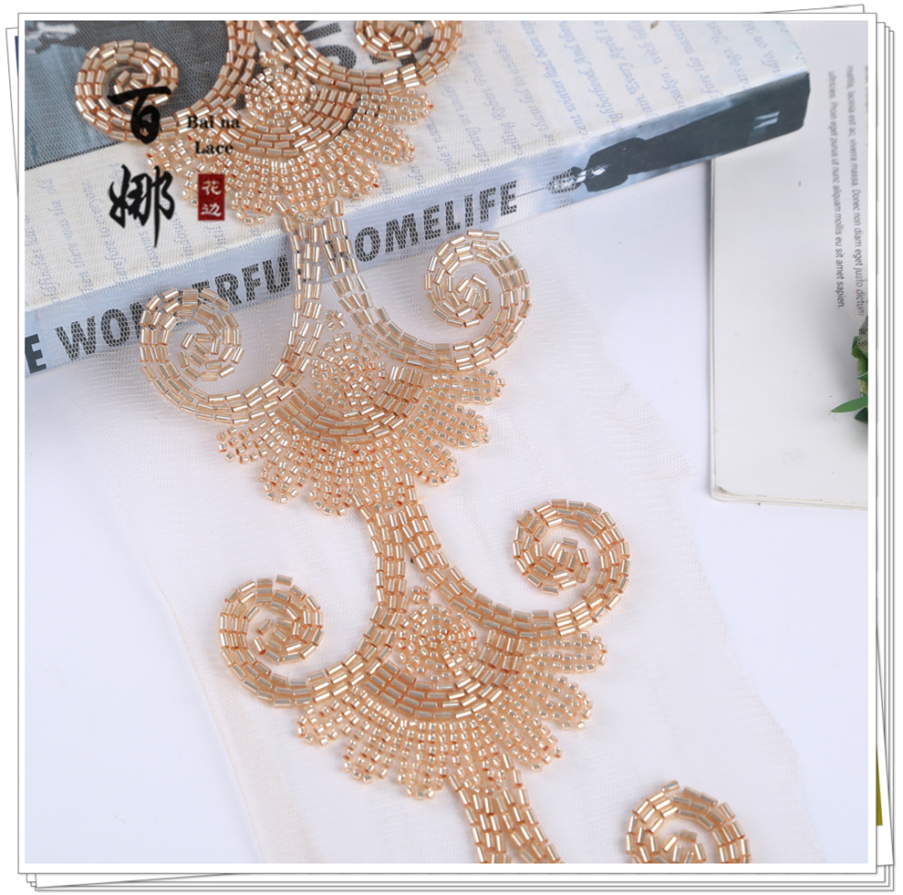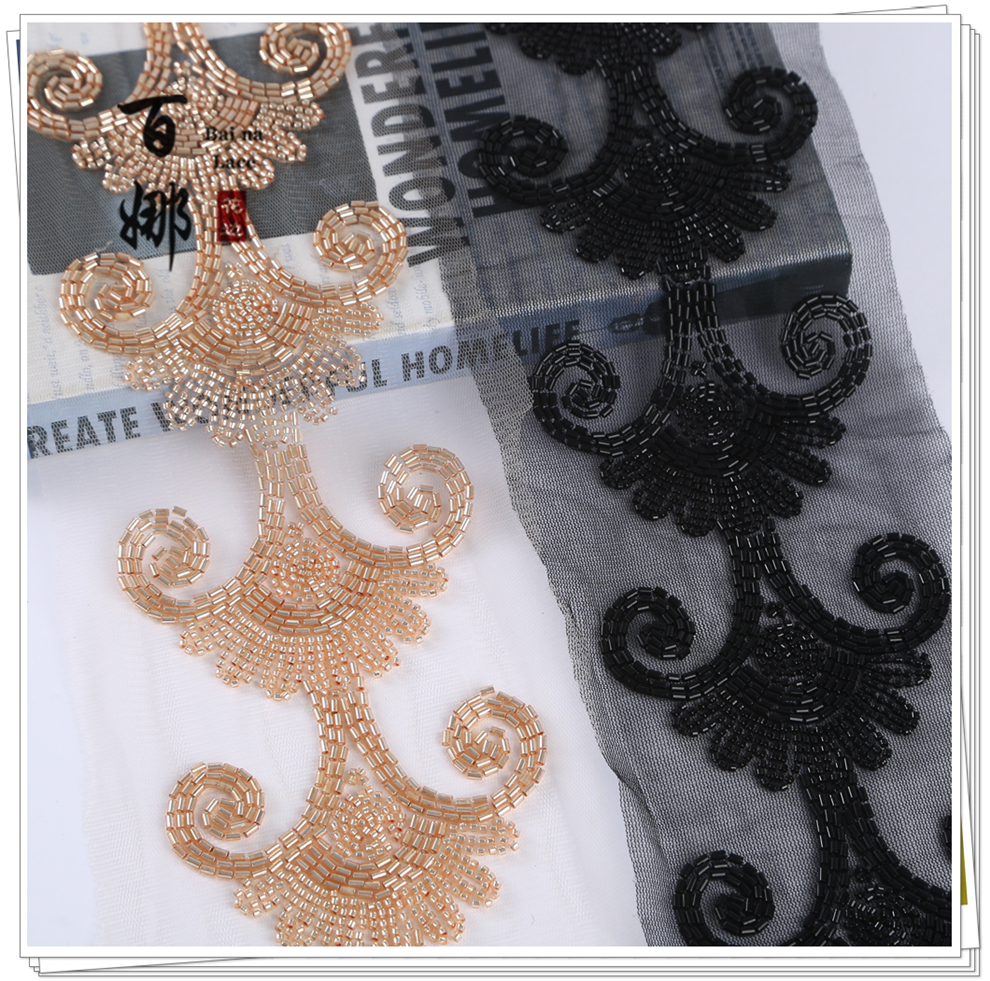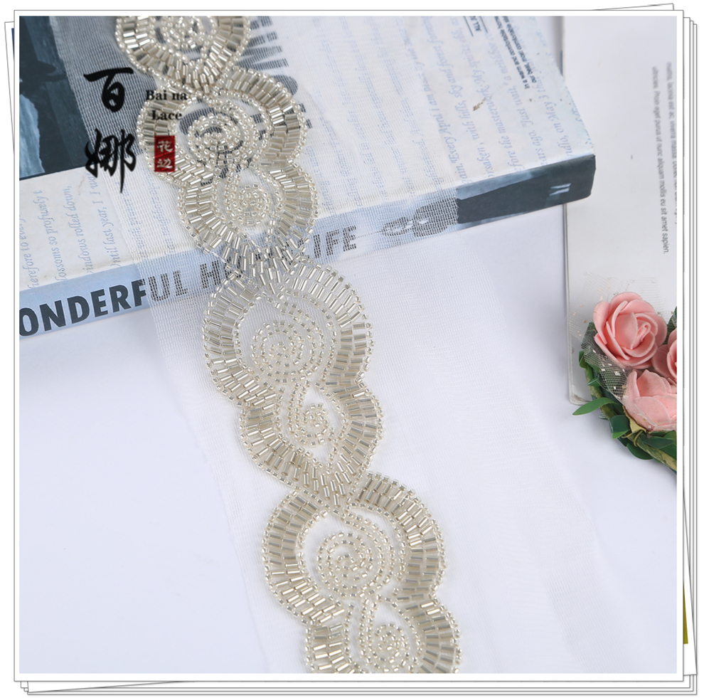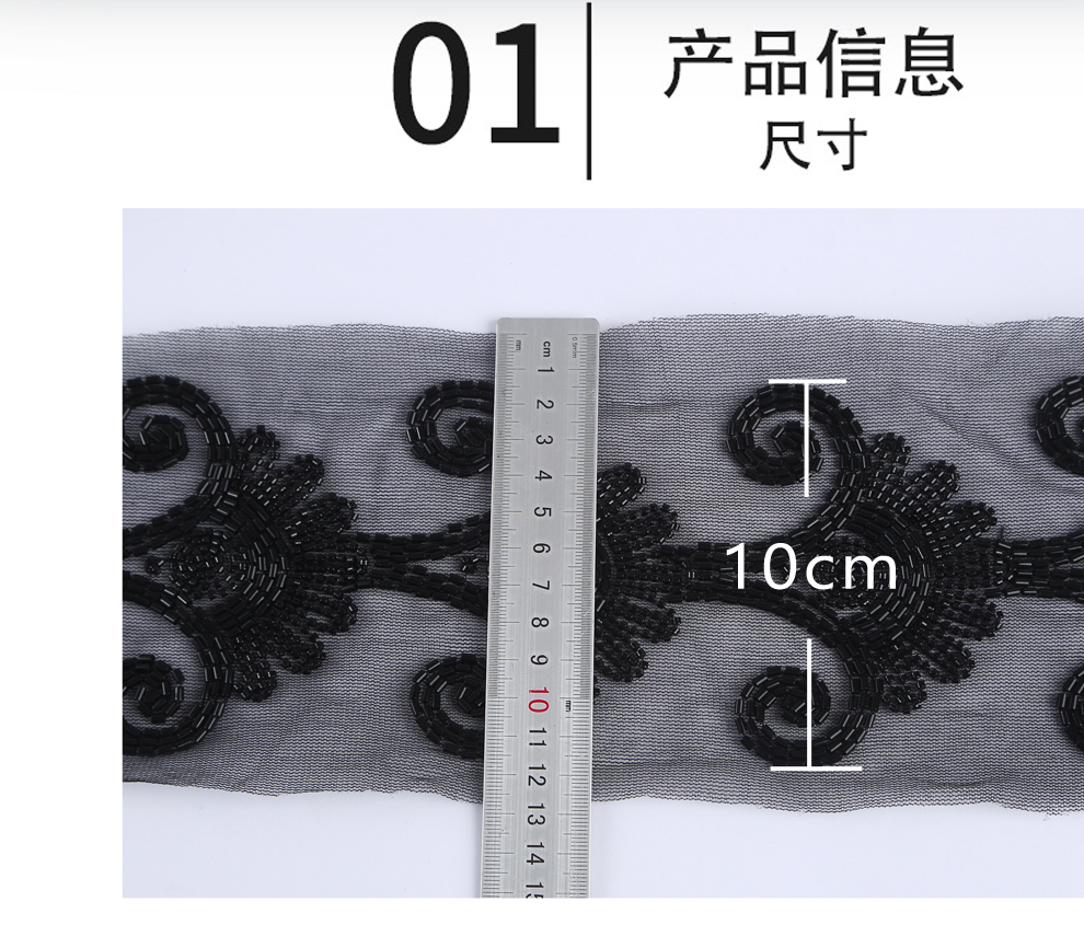 Product Name: 10cm Wide Beaded Pipe with Dense Lace Weaving - Wholesale of Garment and Wedding Dress Decorative Netting Lace Trim