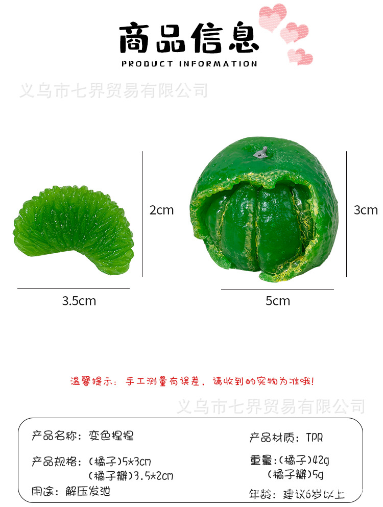 pressure-reducing creative slow rebound color changing orange squeezing toy temperature change orange petal simulation orange pinch decompression toy 中文版