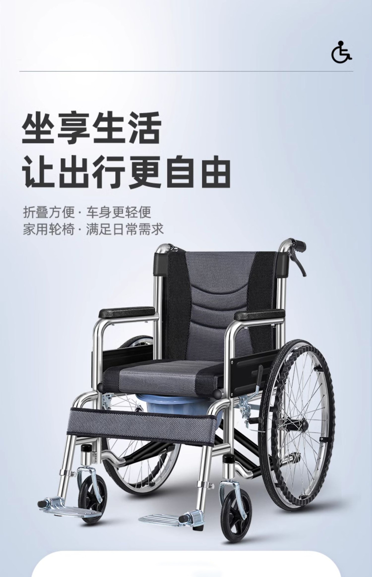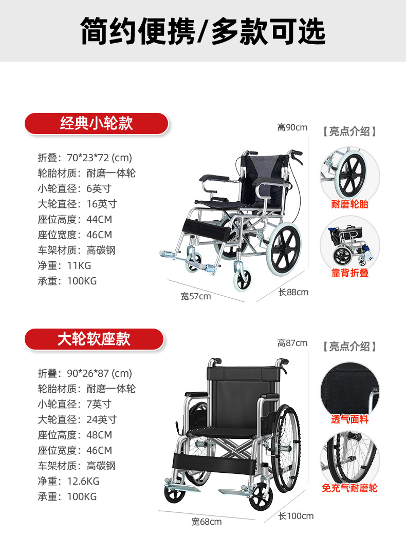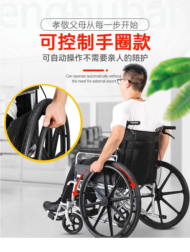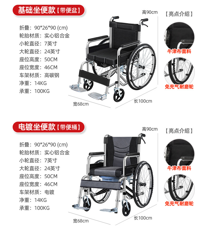 wheelchair foldable and portable hand push with toilet for the elderly hospital, same section wheelchair factory wholesale spot supply 中文版