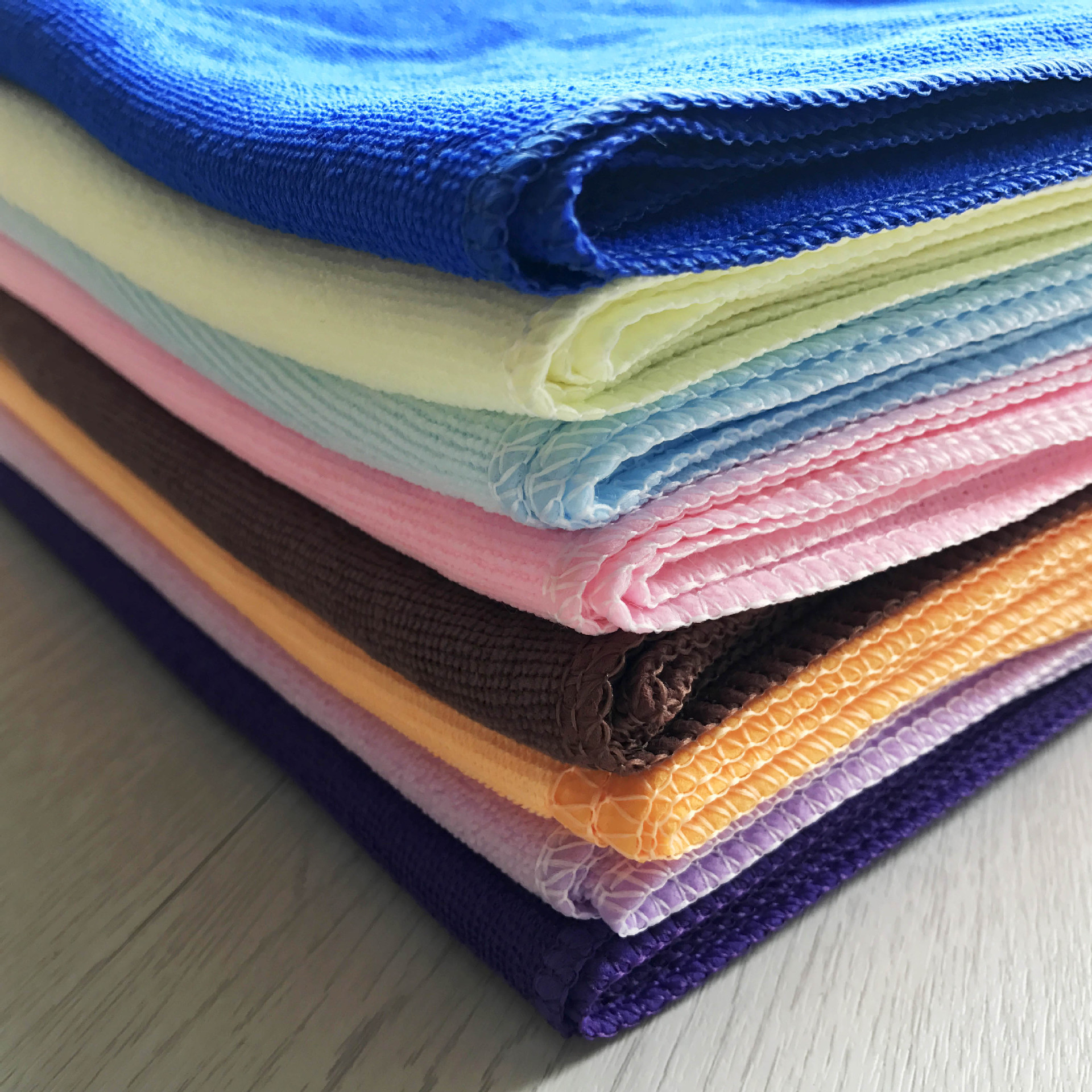Super fine fiber towels come in a variety of colors such as light blue, light purple, light pink, light green, and light yellow, among others. The size 25*25 weighs approximately 7g, the size 20*20 weighs approximately 5g, the thin version of the size 20*20 weighs approximately 6g, the thin version of the size 25*25 weighs approximately 11g, the size 30*30 weighs approximately 10g, the thick version of the size 30*30 weighs approximately 26g, the thick version of the size 30*30 with coral fleece trim weighs approximately 23g, and the thin version of the size 30*30 weighs approximately 16g. By default, the towels are mixed and sent randomly. This towel does not come with a water resistance label or hook. The towels are sold in packs of 100 pieces per color, and if you need a quantity that is a multiple of 100, you can confirm the color with the customer service. If you make a special request, it will be ignored and the towels will be sent randomly. The white trim is not included.Only white。This linkThin stylehandkerchiefUsually as a gift or one-time useUsing a cut-edge towel can easily lead to distortion and fraying, whereas a lock-edge towel tends to be less prone to fraying. Thicker towels have better absorbency.