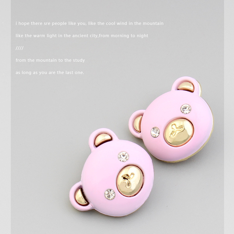 bear head button sweater cardigan sweater colorful cute cartoon high-end luxury rhinestone metal texture button 中文版