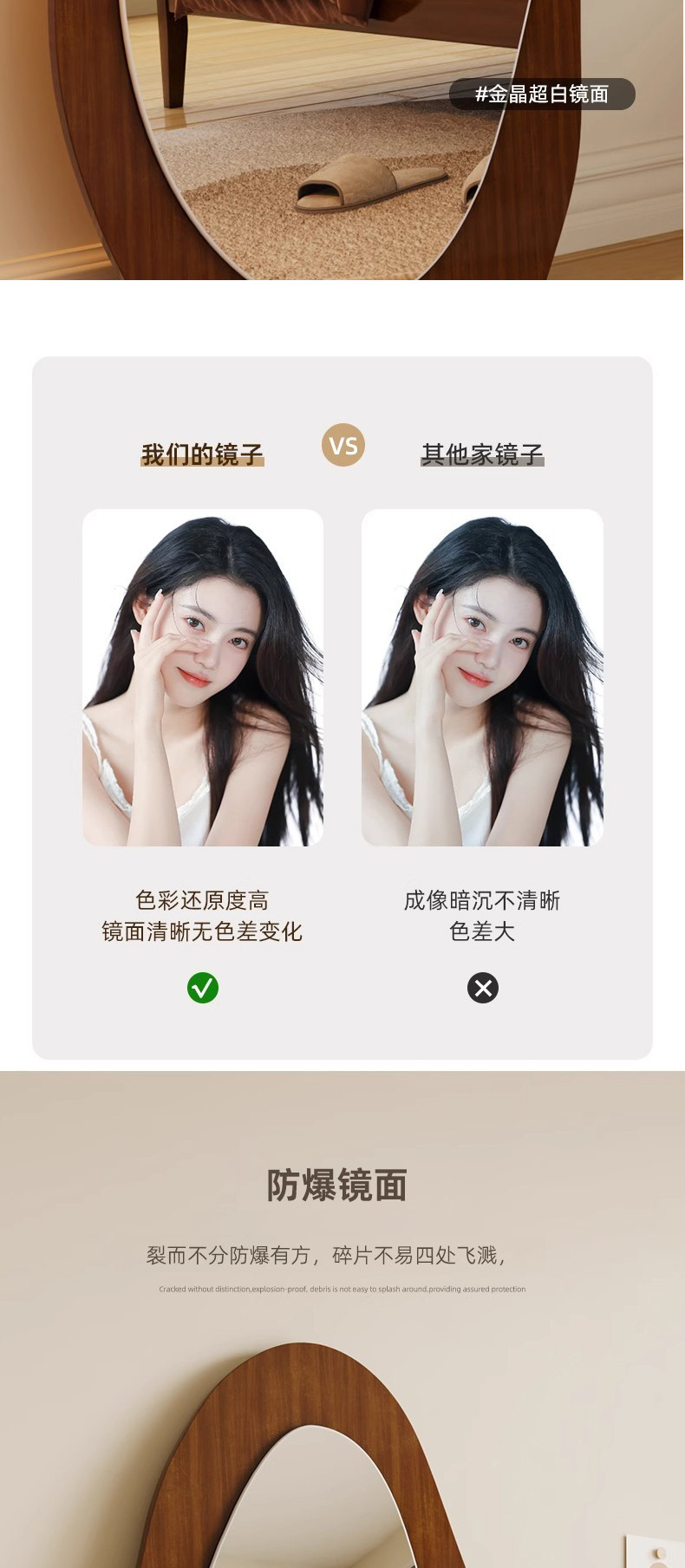 home retro full-length mirror ins style dressing mirror irregular full-length mirror wall-mounted large mirror high-grade floor mirror
