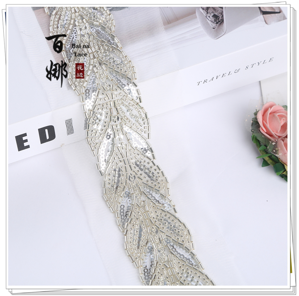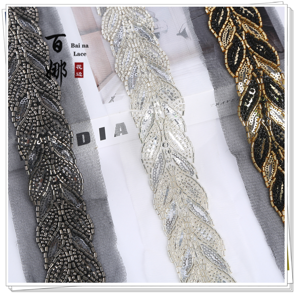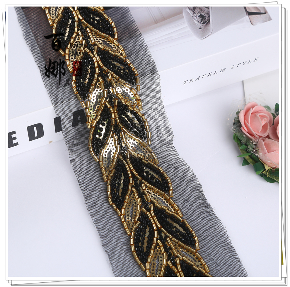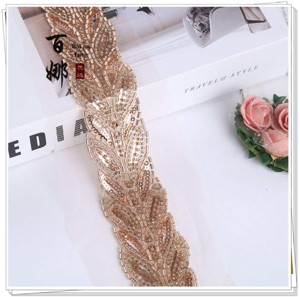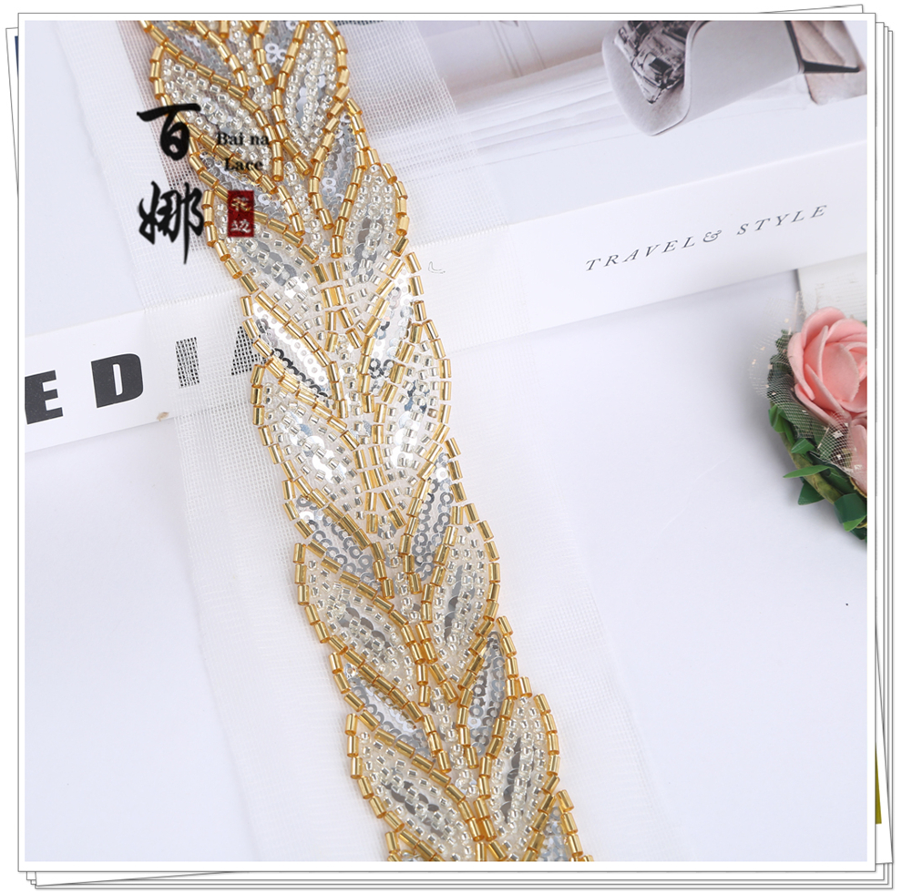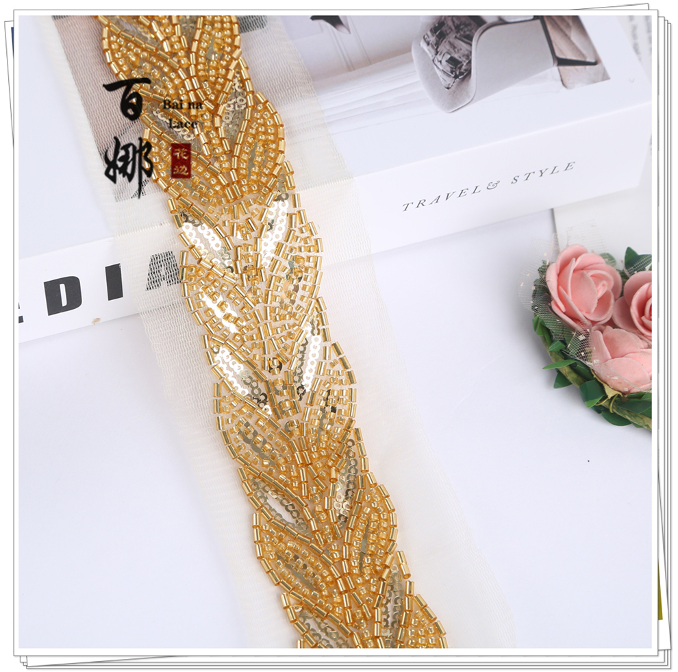 Product Name: Direct-sales Netting Handcrafted Beaded Tube Lace Trim Flower Edge, Beaded Lace Accessories for Clothing Hair Accessories DIY Weaving Belt