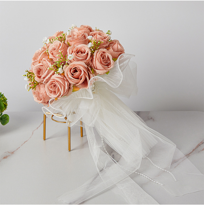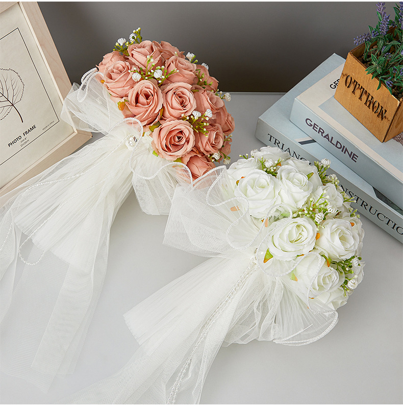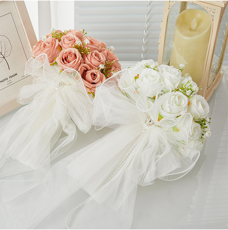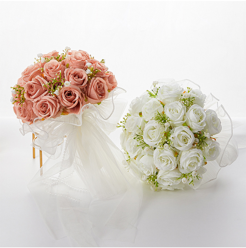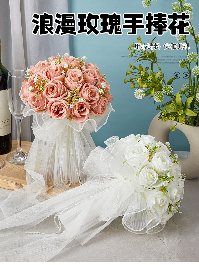 bride wedding bouquet holder white simulation korean wedding rose bouquet studio photography beautiful starry bouquet 中文版