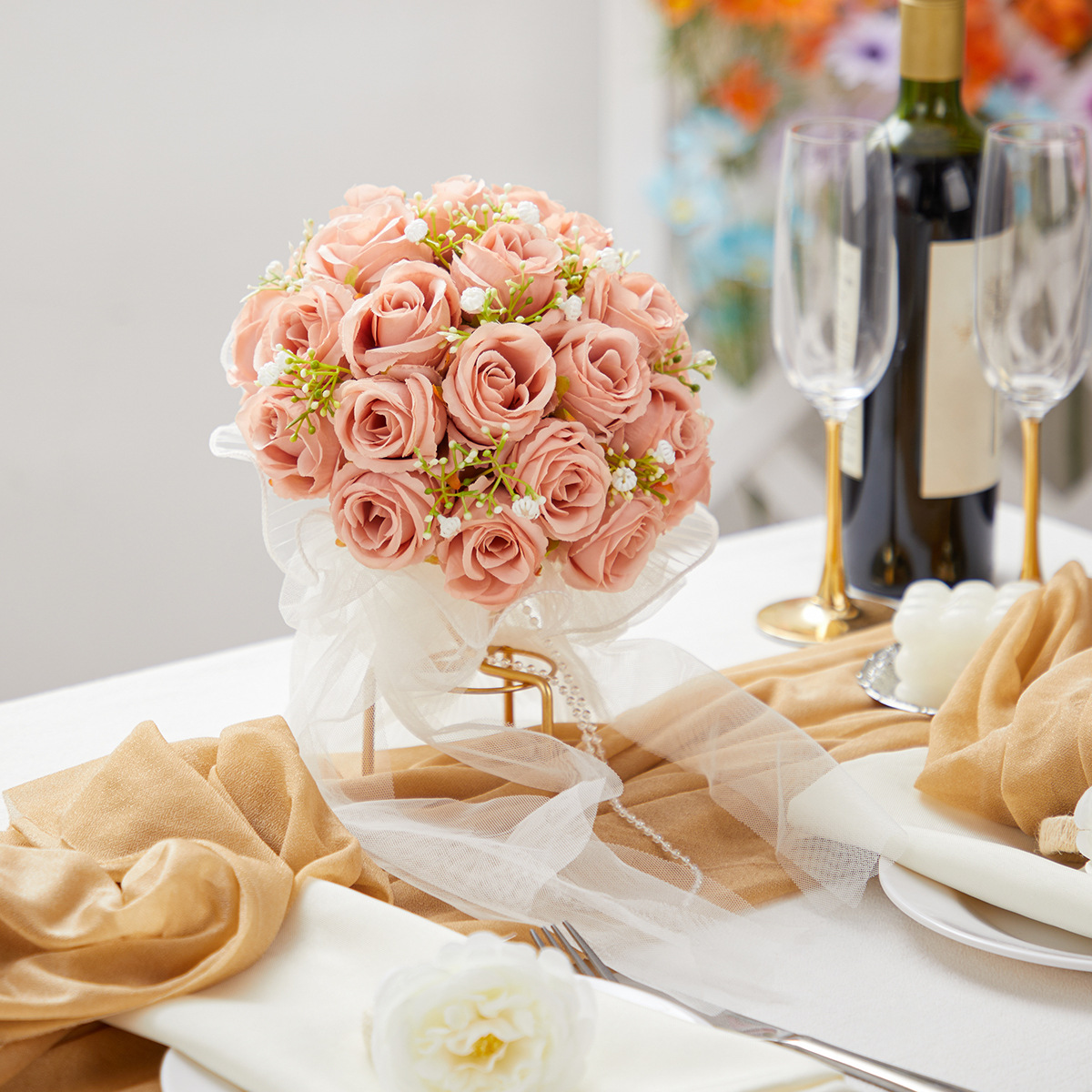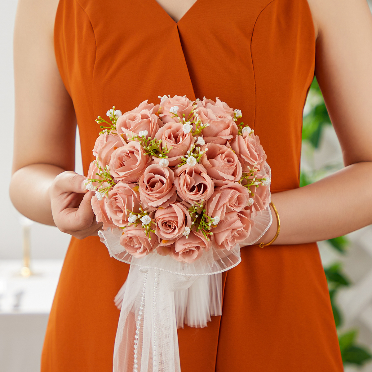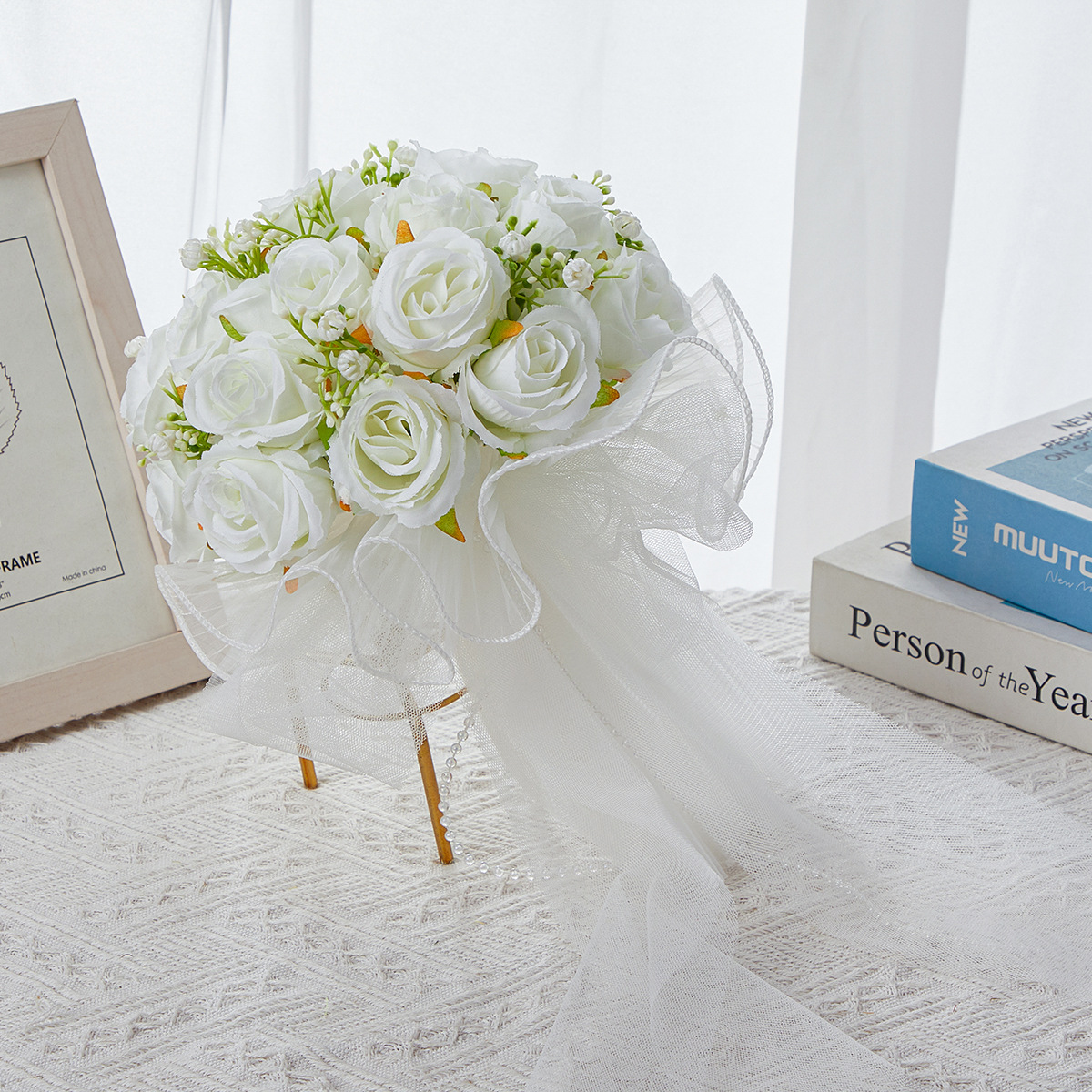 bride wedding bouquet holder white simulation korean wedding rose bouquet studio photography beautiful starry bouquet 中文版