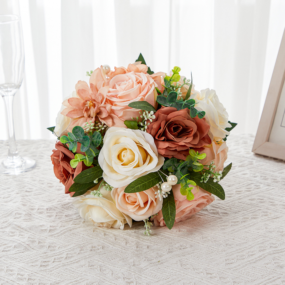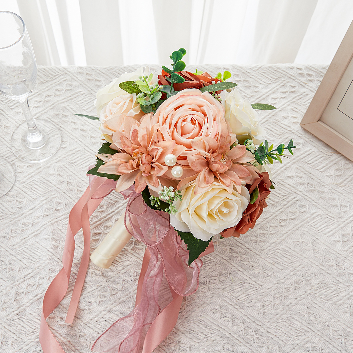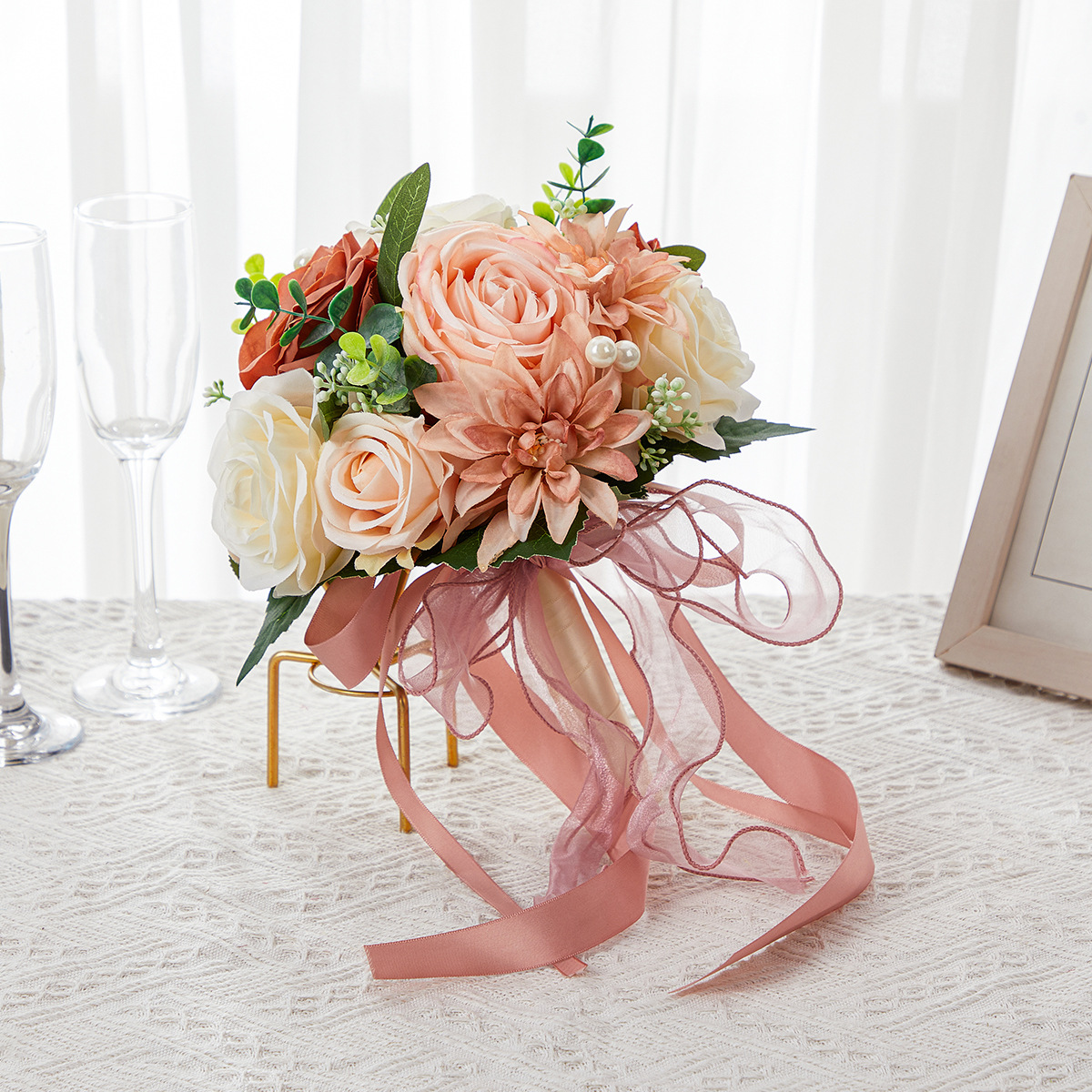 amazon wedding bouquet holder advanced sense fake rose flower cross-border bridal bouquet advanced sense simulation bouquet 中文版