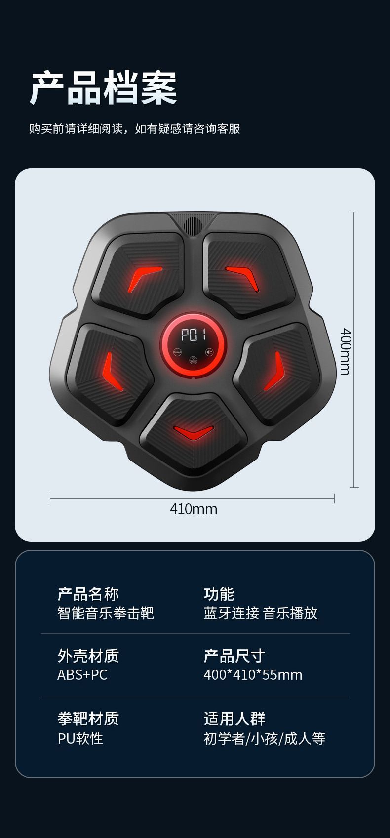 smart music bluetooth boxing target [10 hitting modes boxing force test height adjustable]]