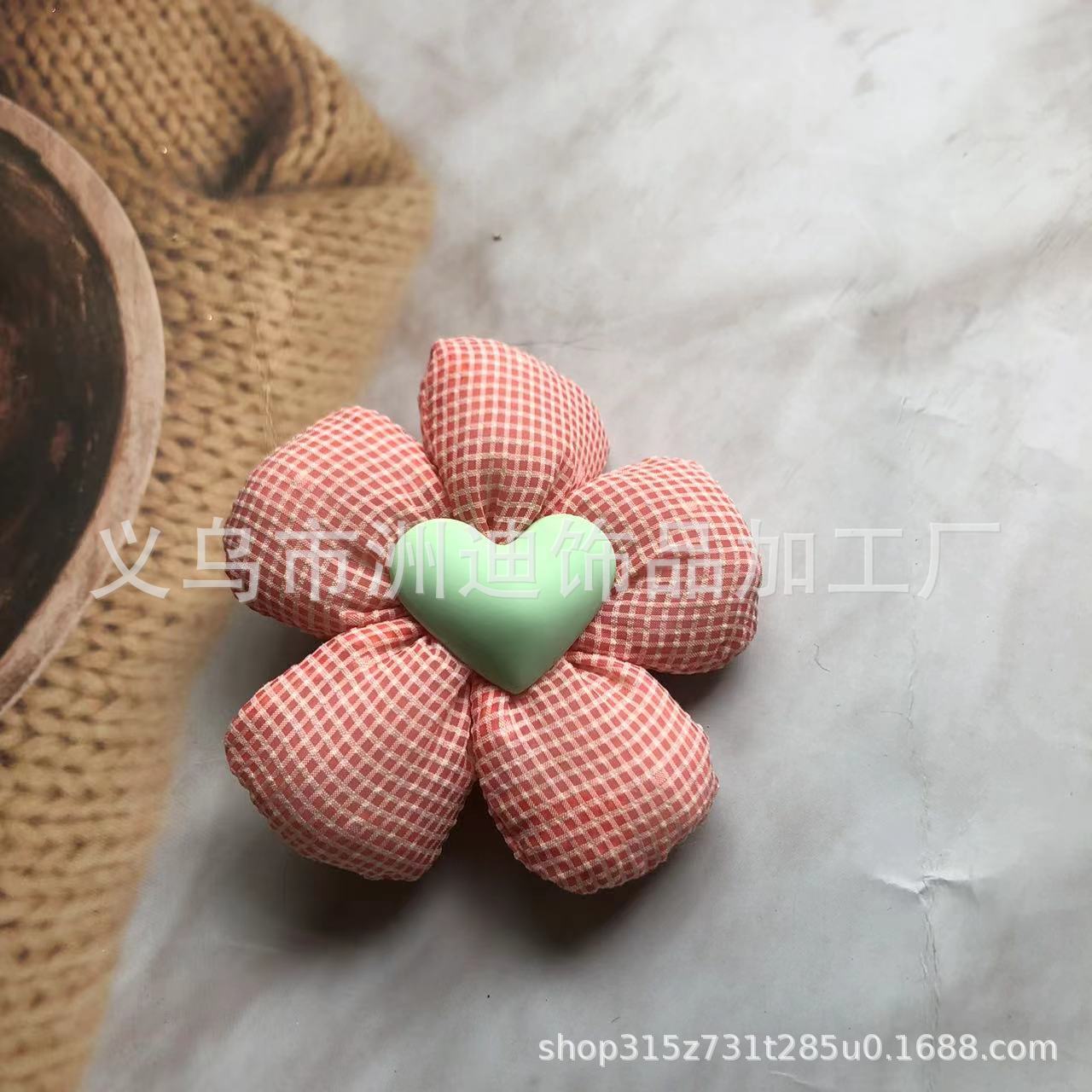 new fabric craft cotton-filled three-dimensional plaid peach heart five petal flower children's hair accessories brooch plush slippers accessories 中文版