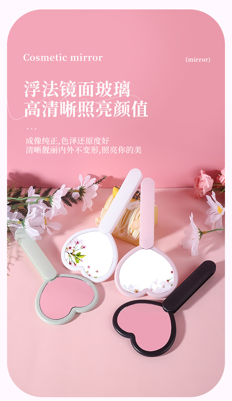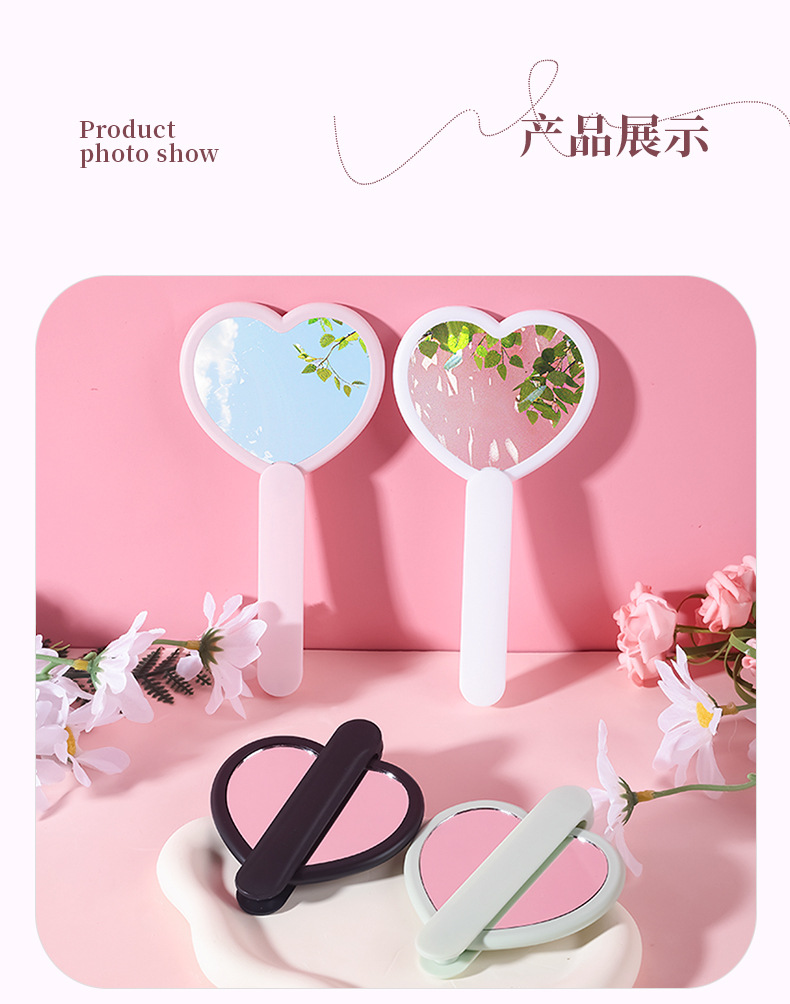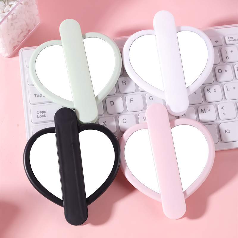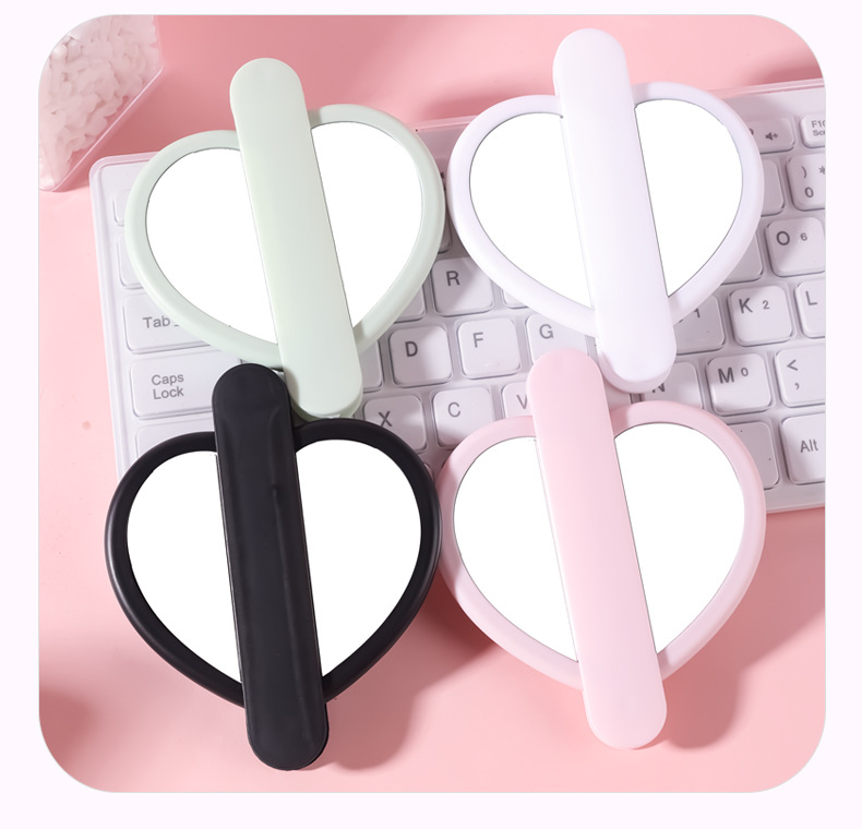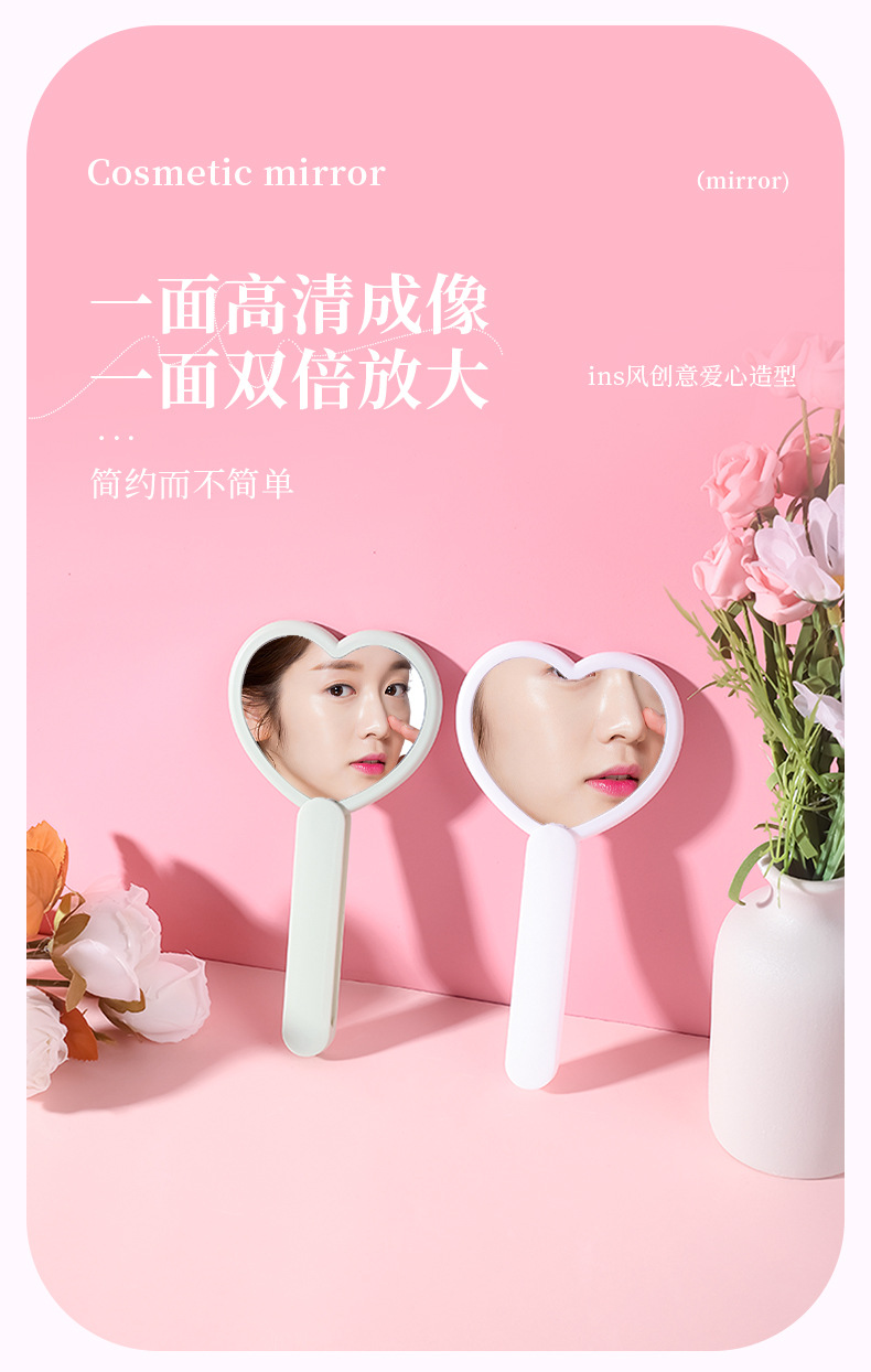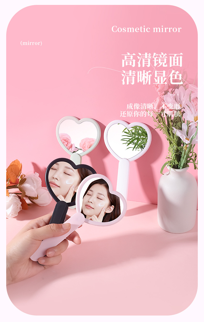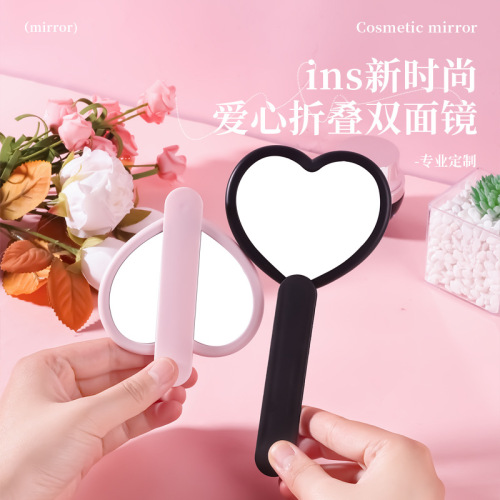 heart-shaped rotating double mirror portable hand-hold mirror heart-shaped hand-held cosmetic mirror portable makeup mirror online celebrity mirror wholesale 中文版