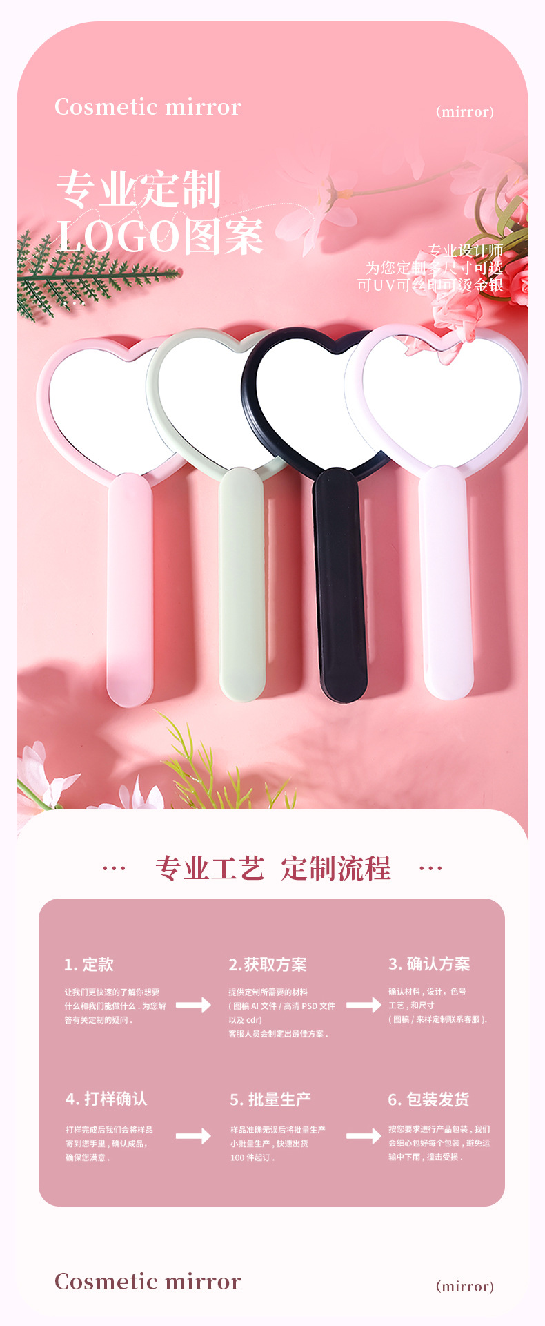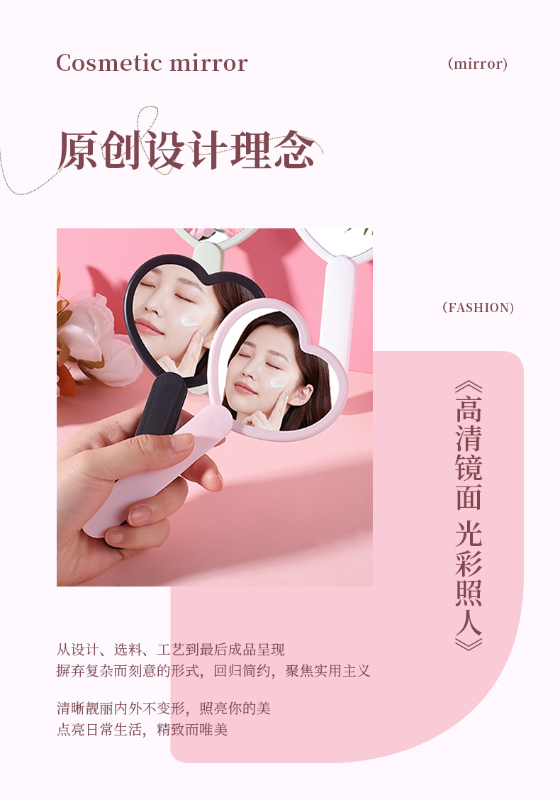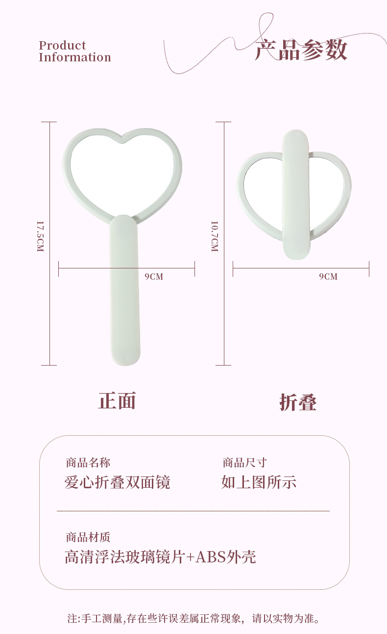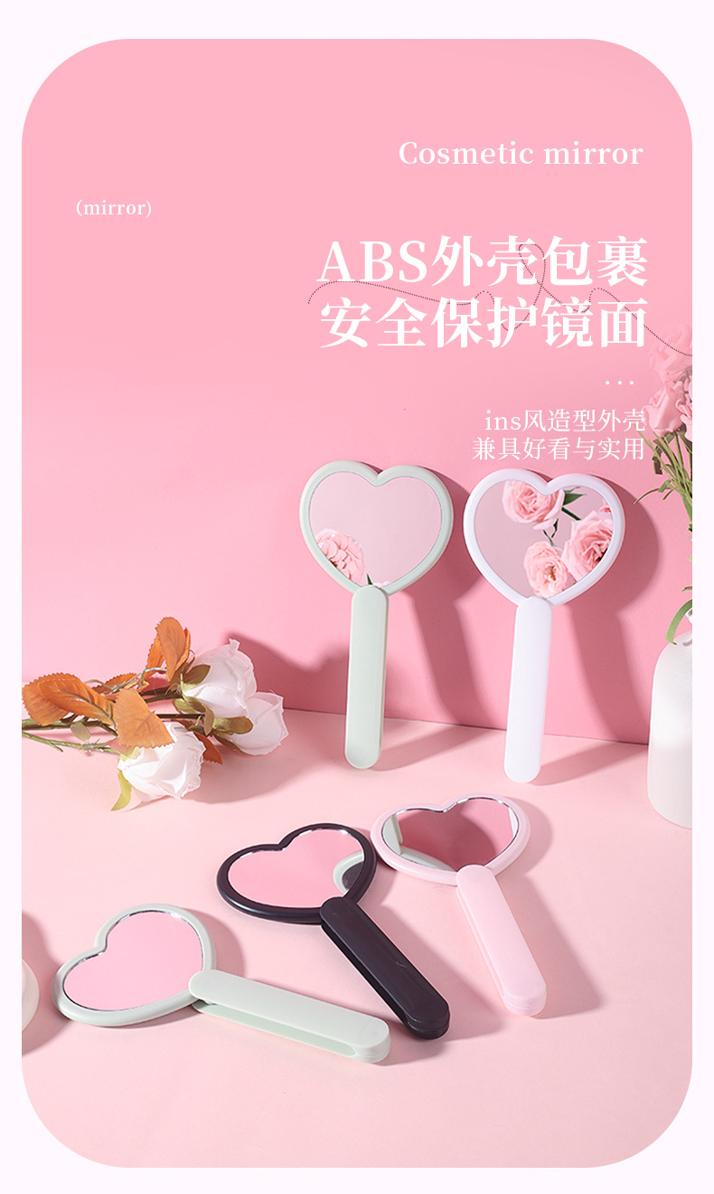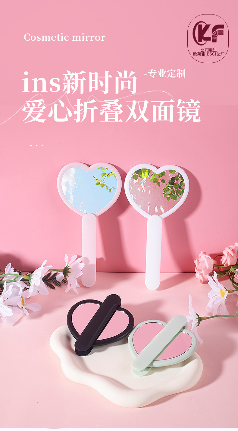 heart-shaped rotating double mirror portable hand-hold mirror heart-shaped hand-held cosmetic mirror portable makeup mirror online celebrity mirror wholesale 中文版