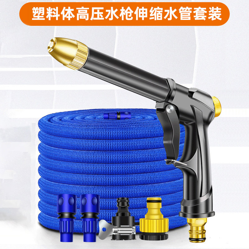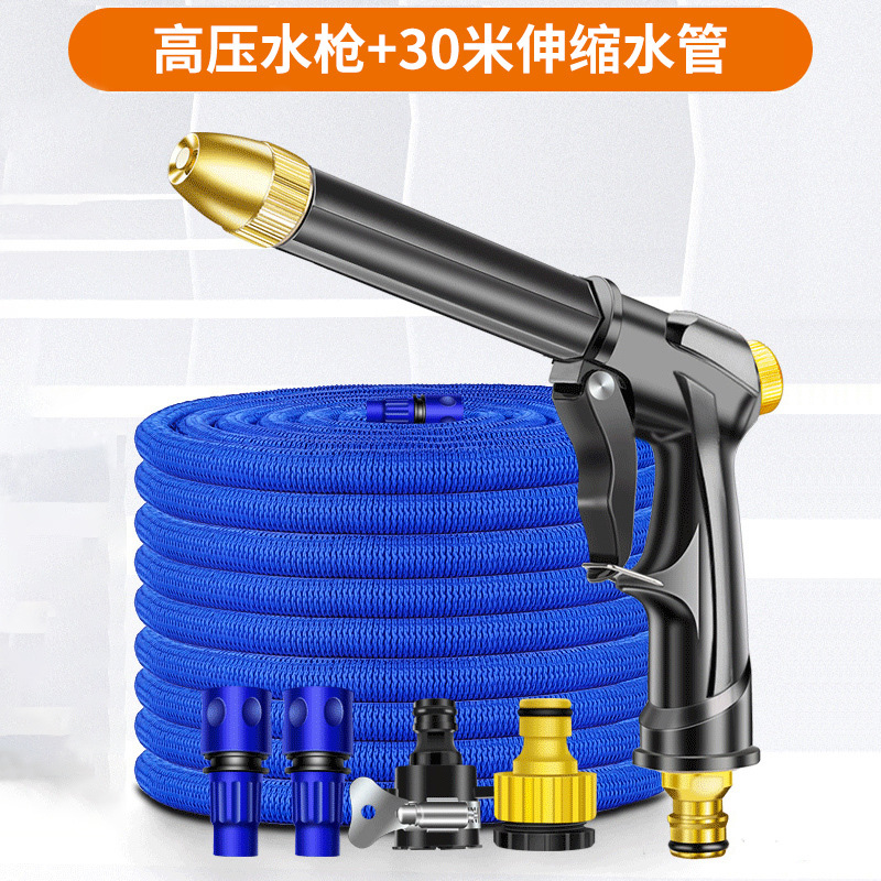 [black thick plastic body high pressure water gun] 30 m plastic connector telescopic pipe [10 m before water injection]]