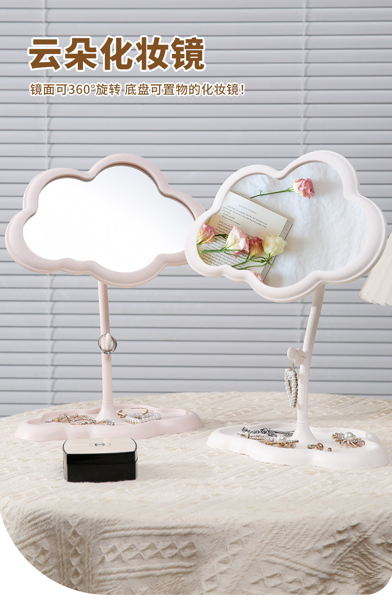 princess mirror ins style girl dressing mirror bedroom dorm desktop shaped double clouds good-looking makeup mirror 中文版
