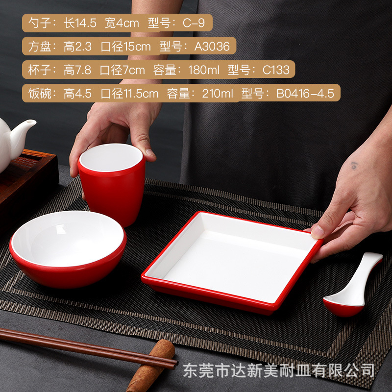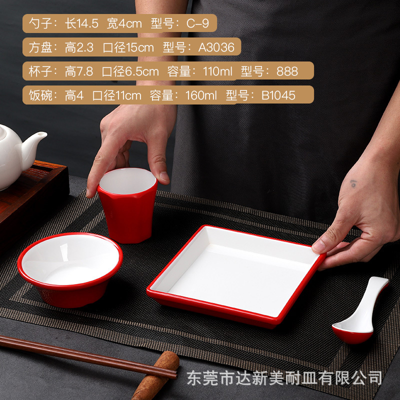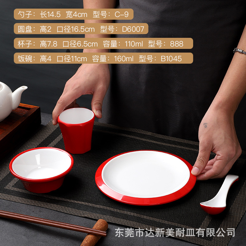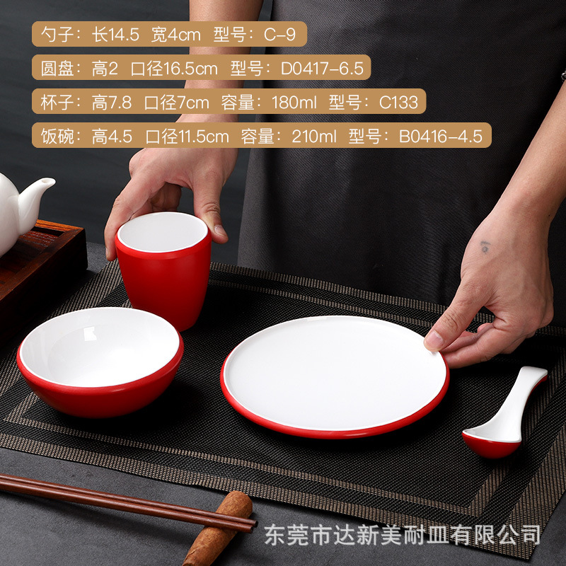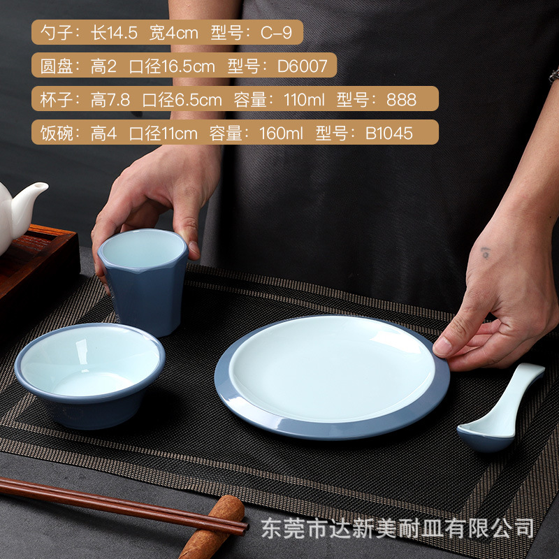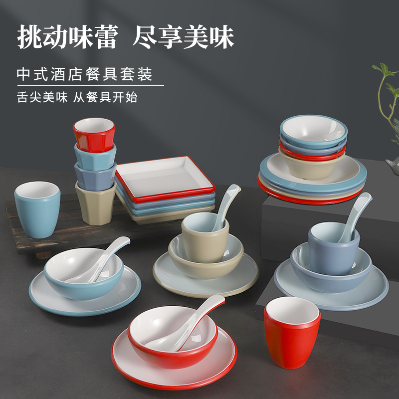 customized melamine tableware commercial hot pot tableware set four-piece porcelain-like thickened bowl hotel chinese melamine tableware 中文版