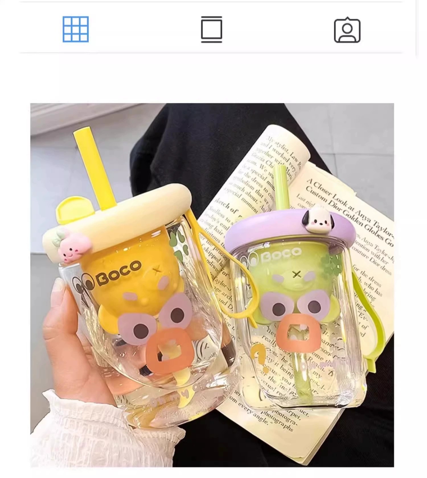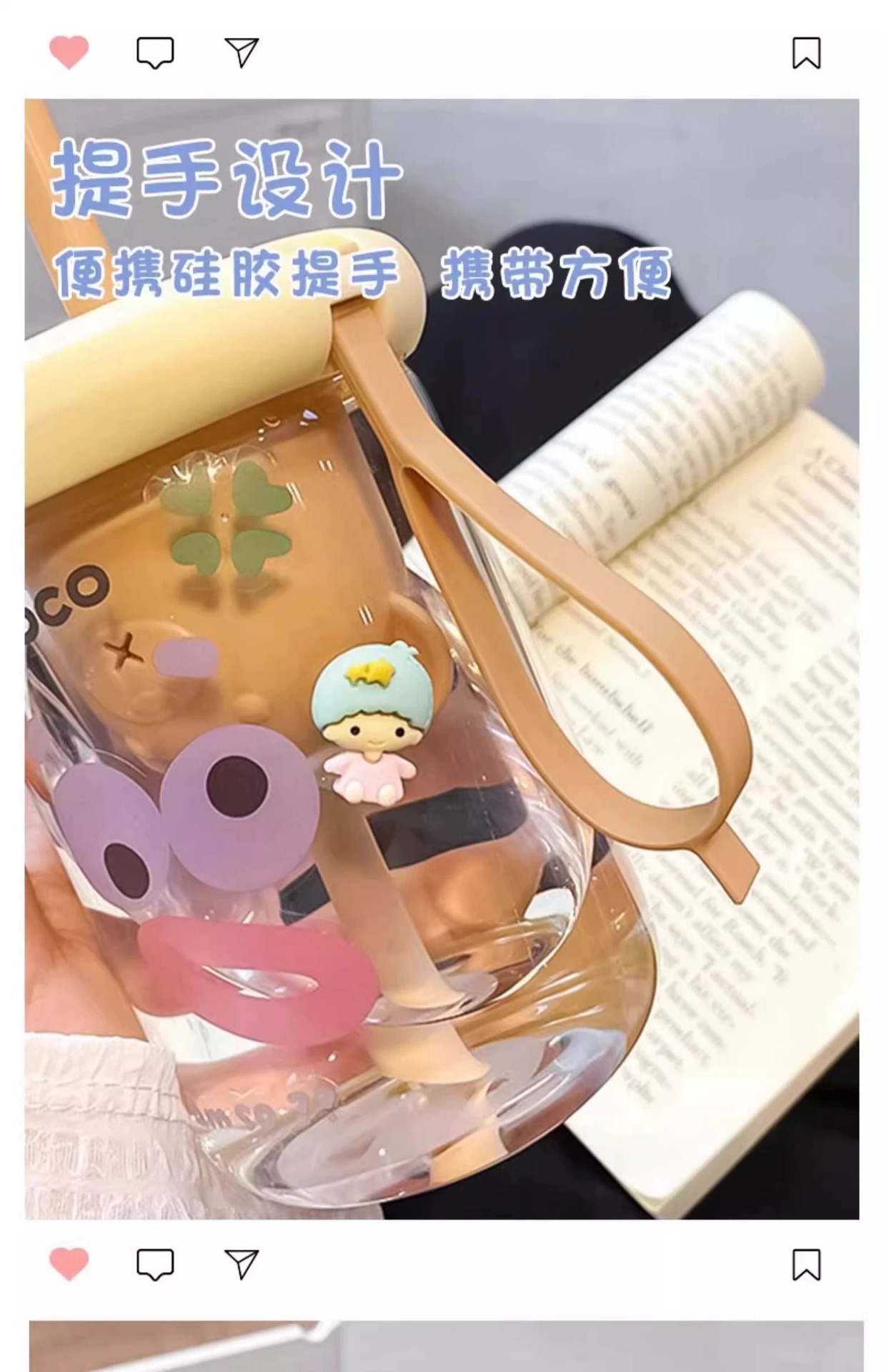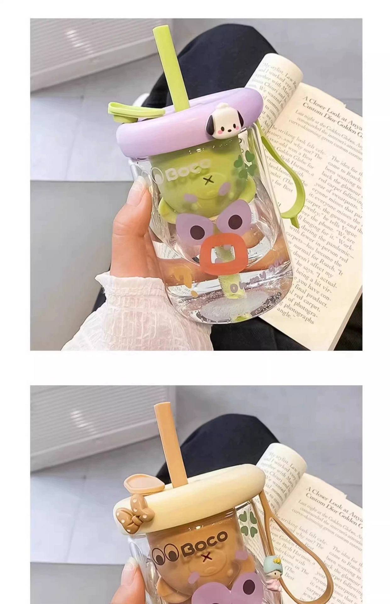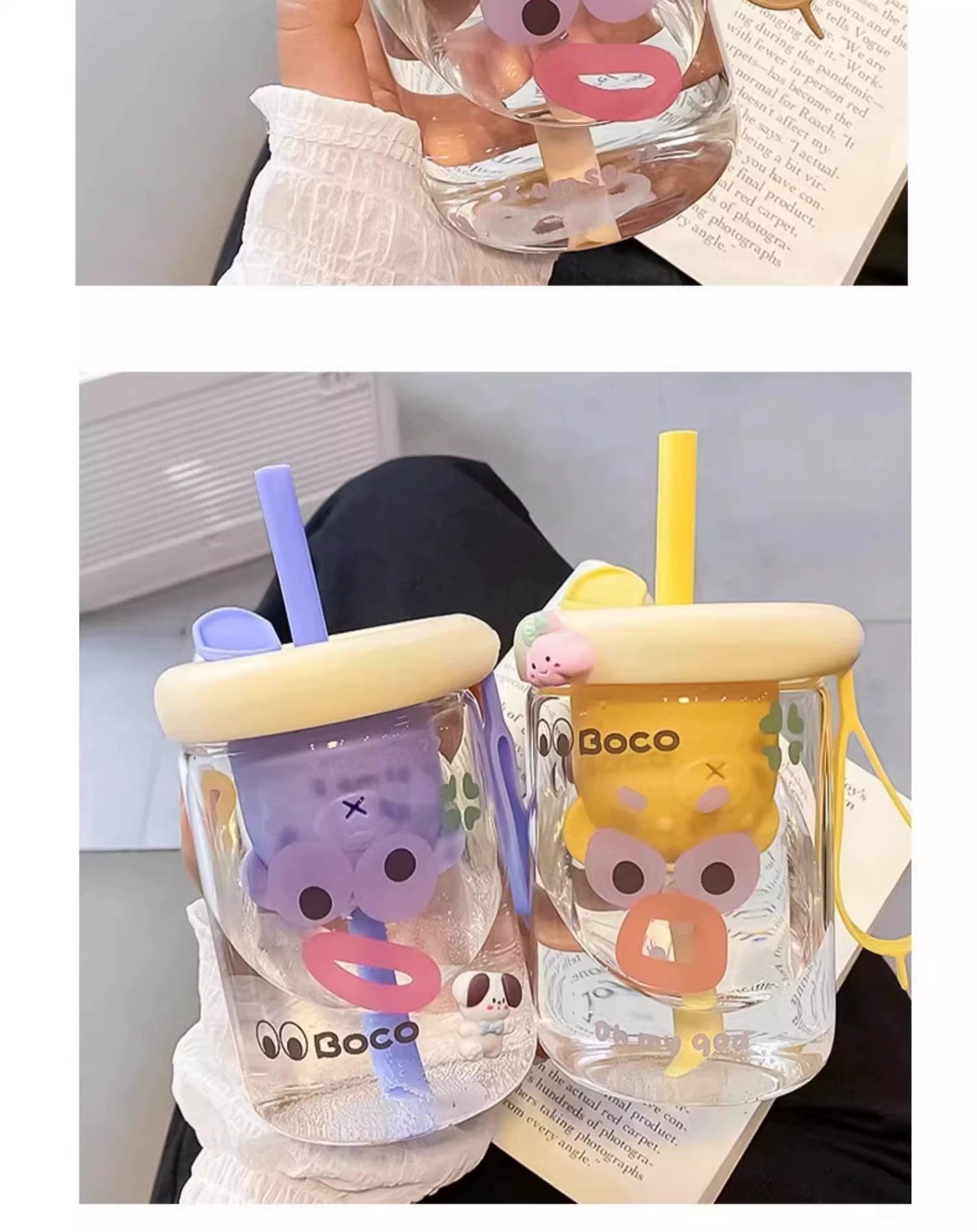 bear tea strainer glass straw cup-purple