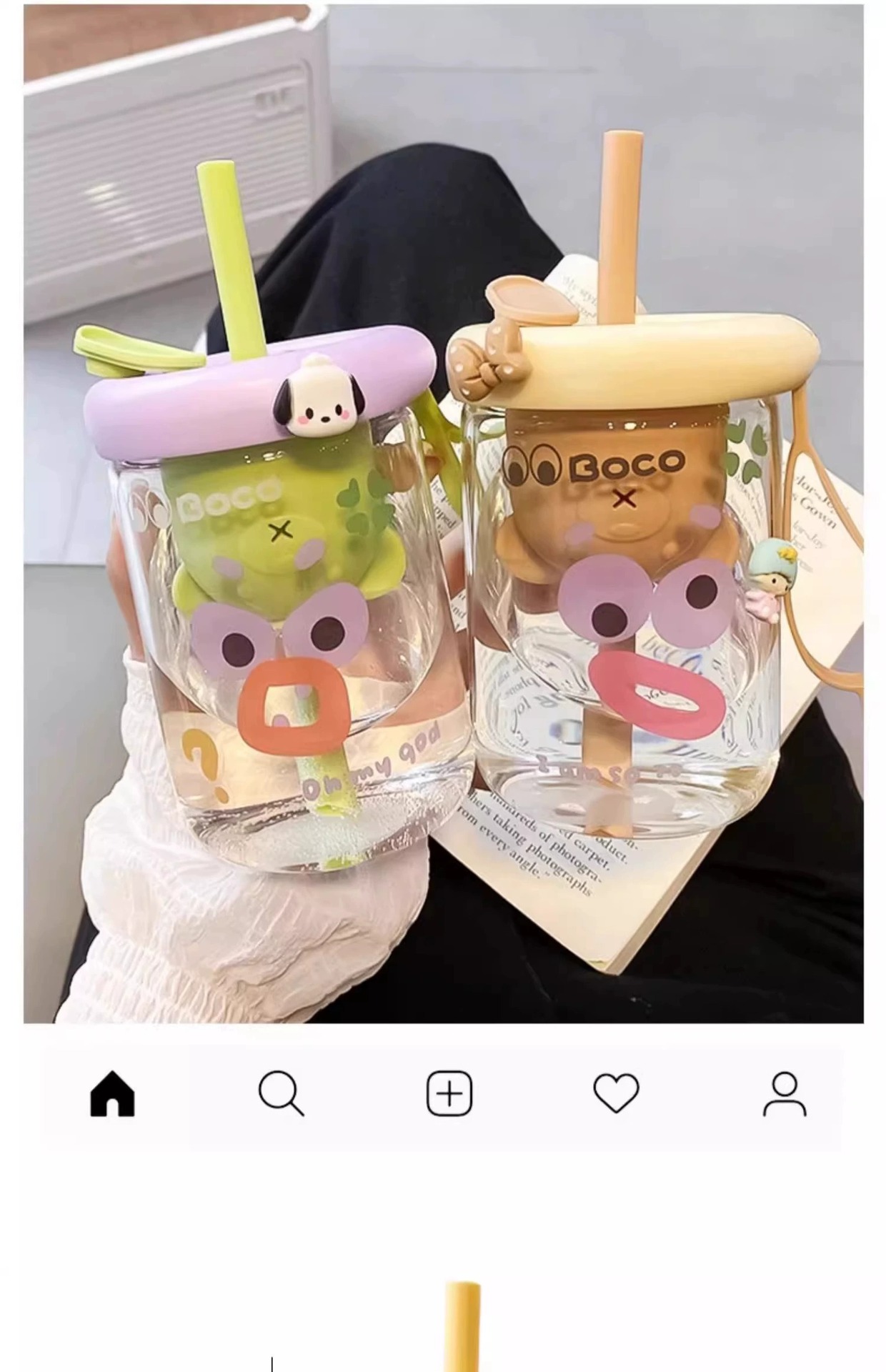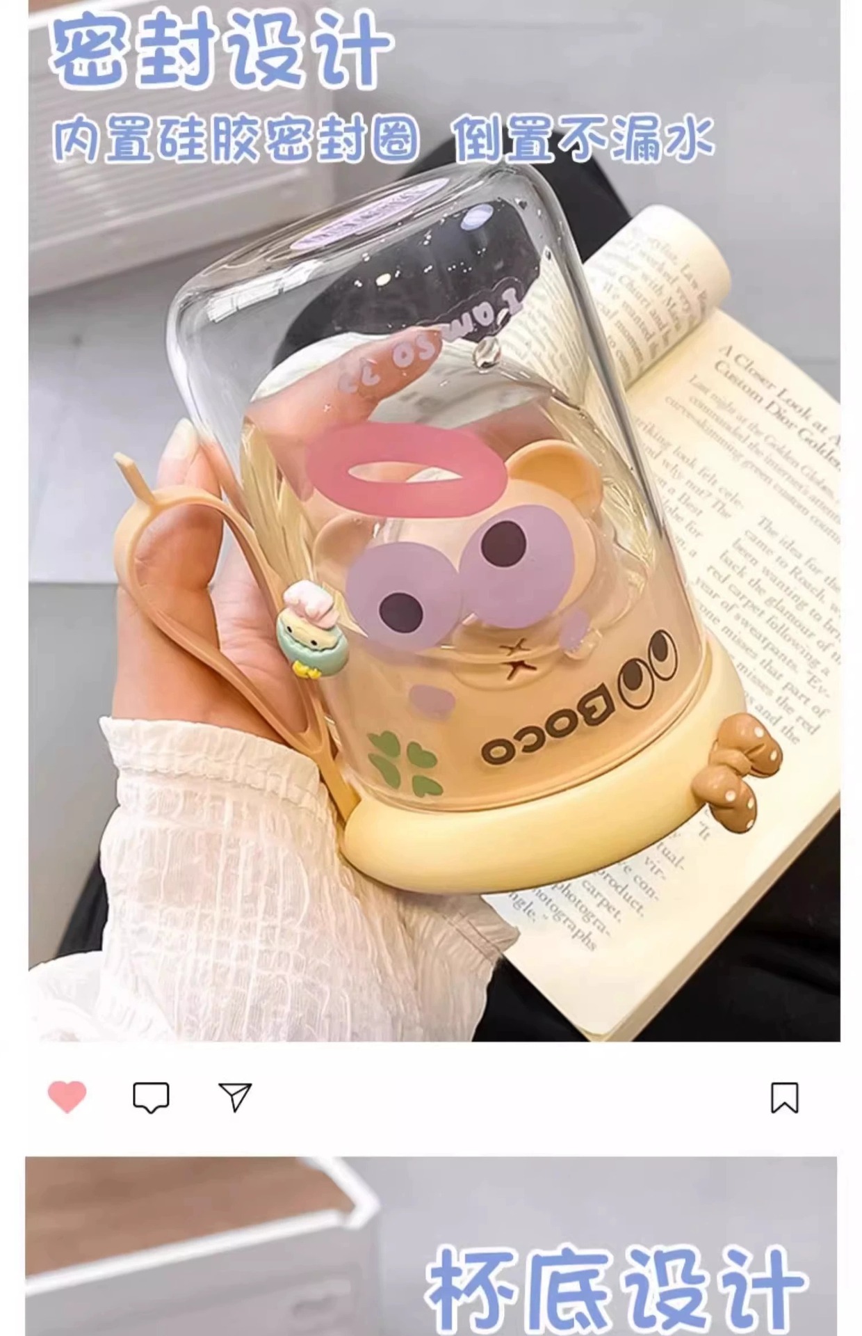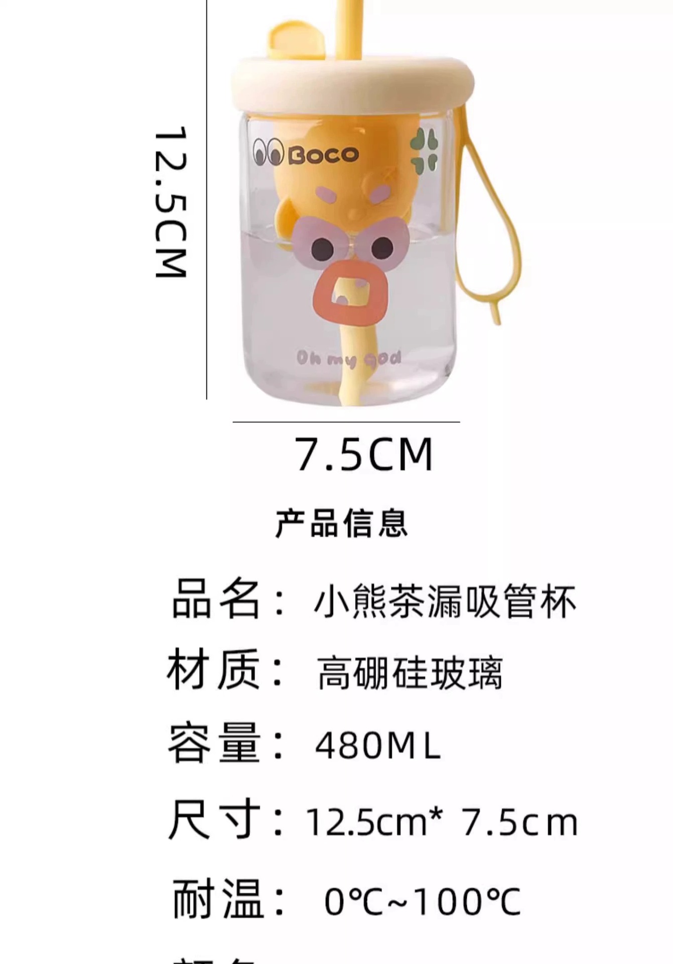 bear tea strainer glass straw cup-yellow