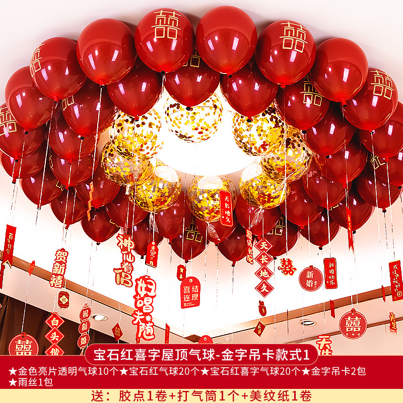 ruby red xi word roof balloon-gold word hanging card style 1