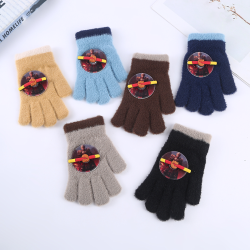 new children's gloves winter warm student fleece-lined thickened knitting cute cartoon monkey king rotatable gloves 中文版
