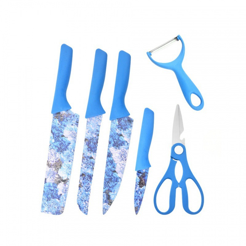 six-piece set of printing straw knives-pull box (blue)