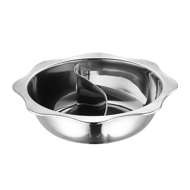 Electromagnetic oven thickened large capacity compartmented mandarin duck hot pot basin, home and commercial use octagonal stainless steel clear soup pot