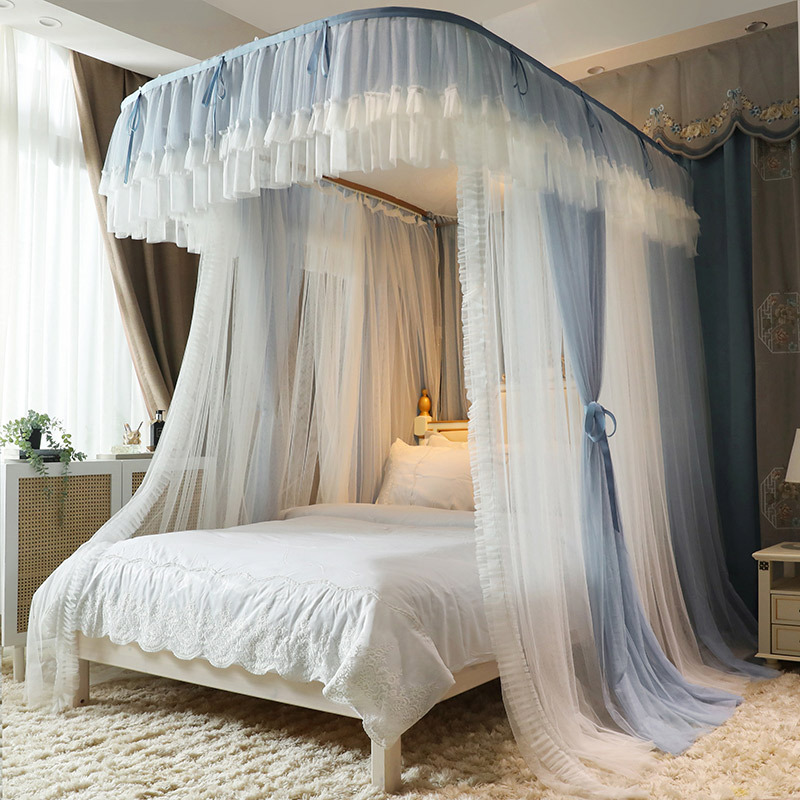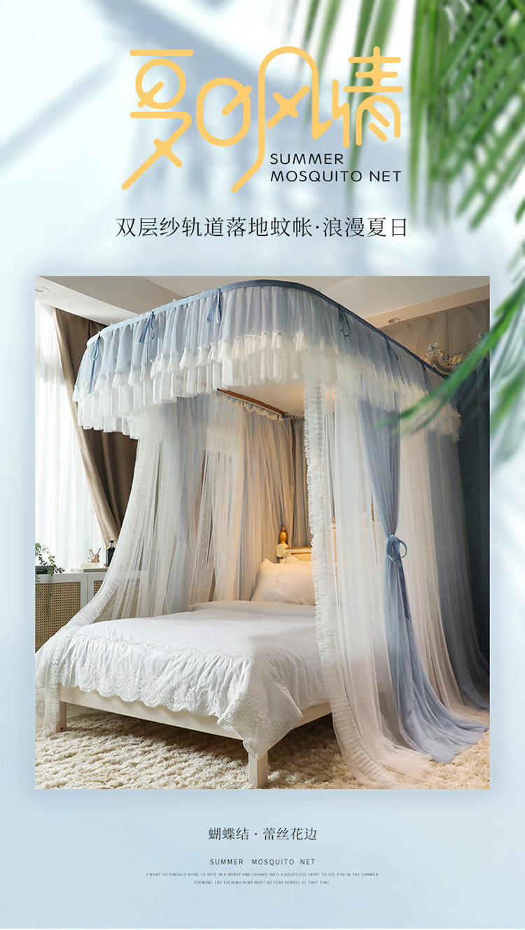 foreign trade mosquito net double-layer yarn u-shaped rail floor mosquito net bed curtain single double bed three-door
