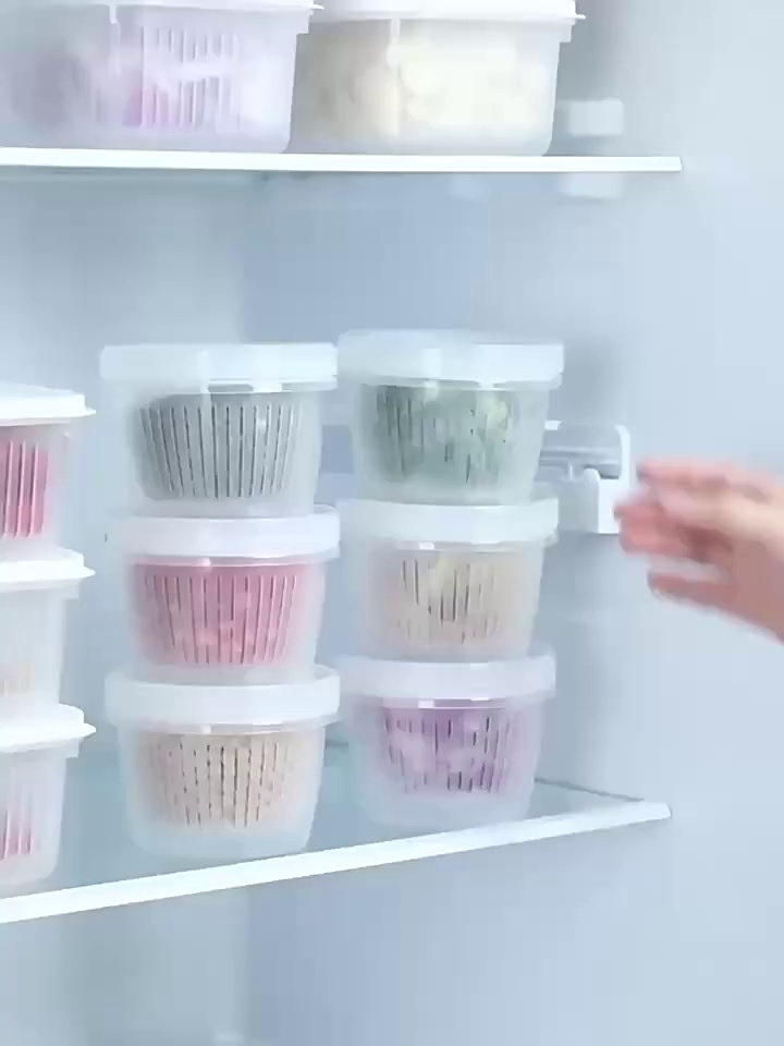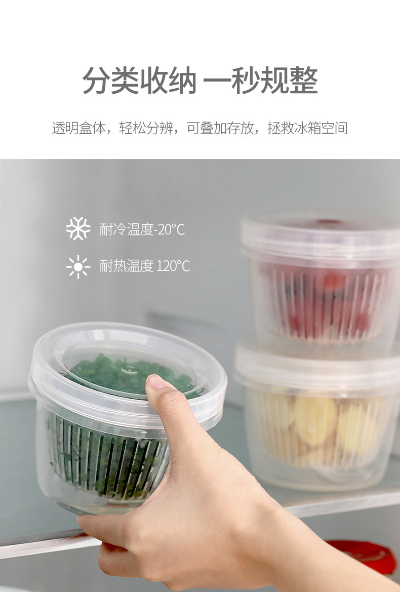 葱花保鲜盒带盖双层沥水圆形塑料冰箱密封盒家用水果葱姜蒜收纳盒 |