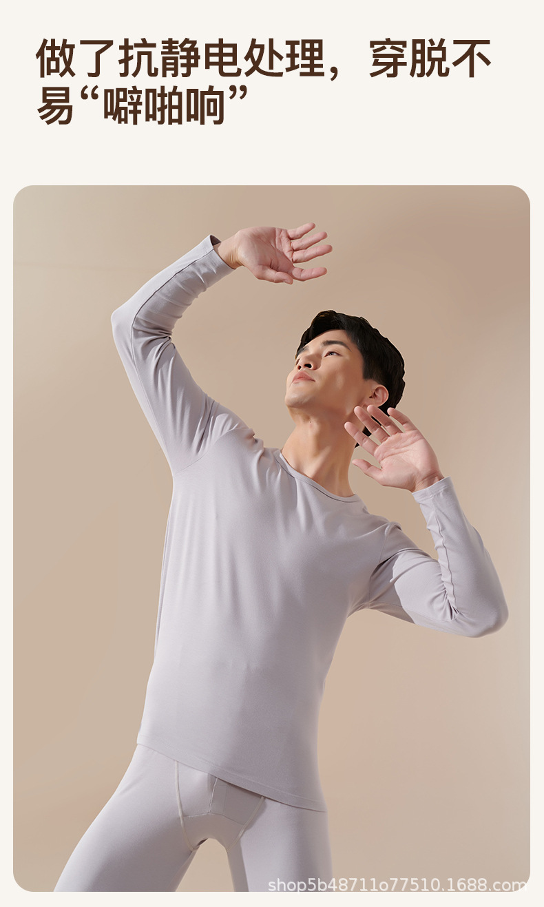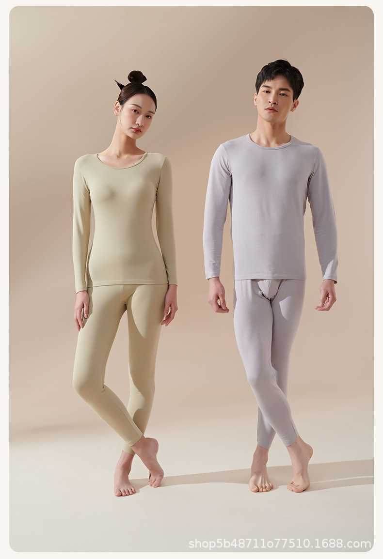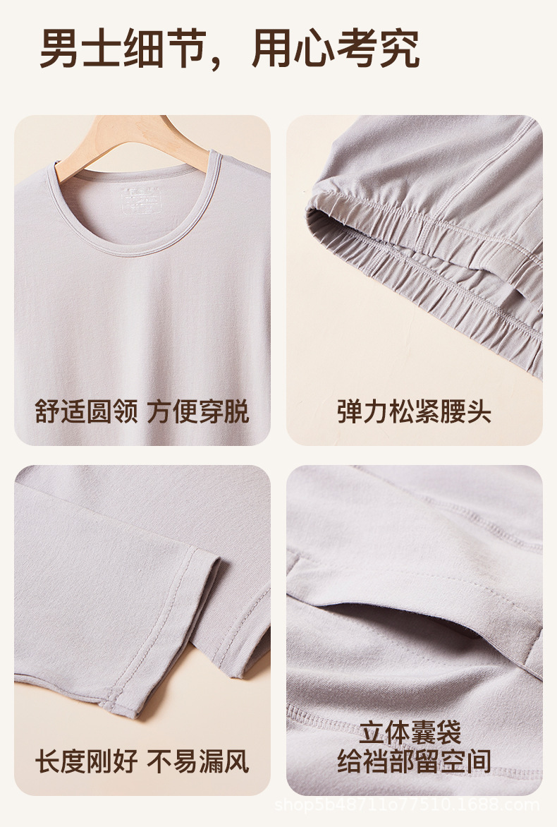 pure cotton long johns top & bottom men's lady couple thin round neck stretch all cotton sweater thermal underwear suit wholesale 中文版