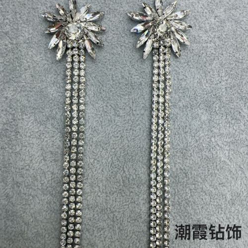 korean style new full rhinestone tassel rhinestone earrings fashionable elegant wedding bridal super flash earrings cross-border hot earrings 中文版