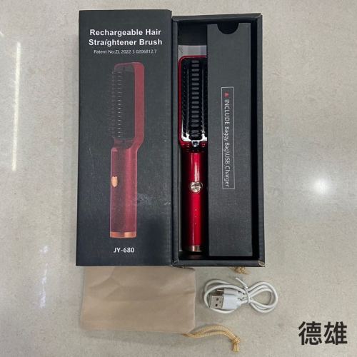 mini straight comb straightening curly hair dual-use wireless portable styling comb fluffy 中文版