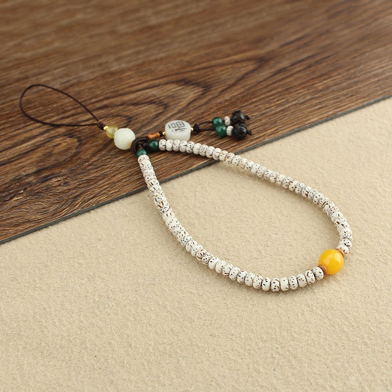 [heqian] 8mm white jade bodhi mobile phone charm