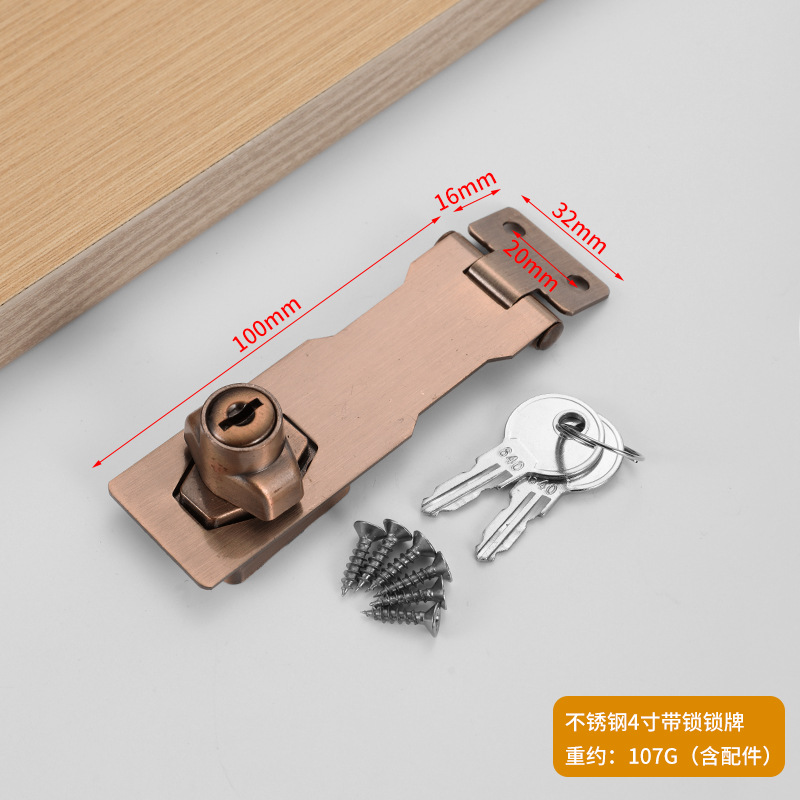 blister pack = stainless steel 4-inch lock hasp (red bronze) with screws