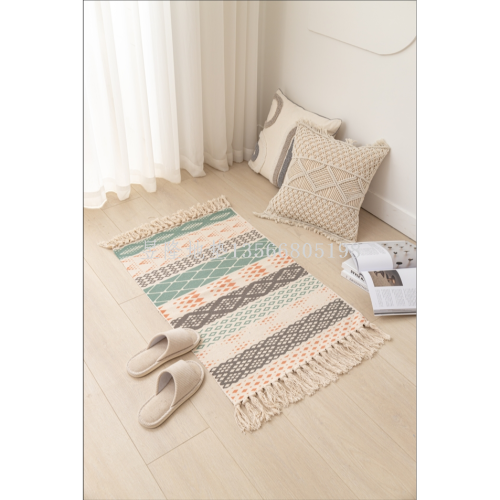 printed cotton and linen tassel floor mat non-slip absorbent dust removal living room sofa and tea table bedroom bed front carpet 中文版