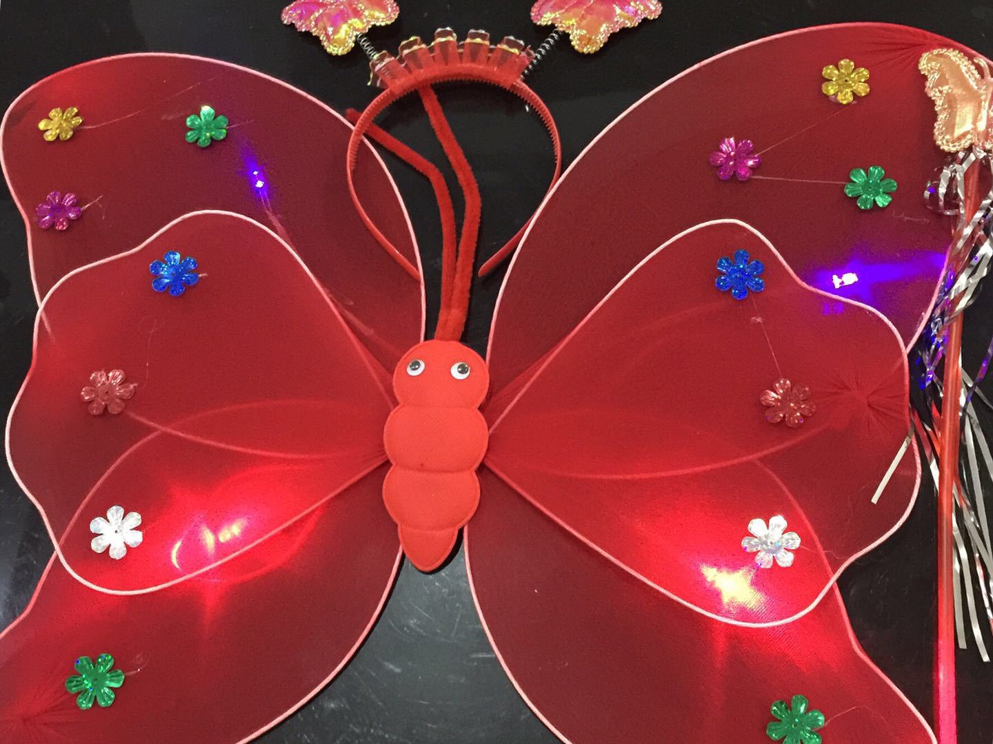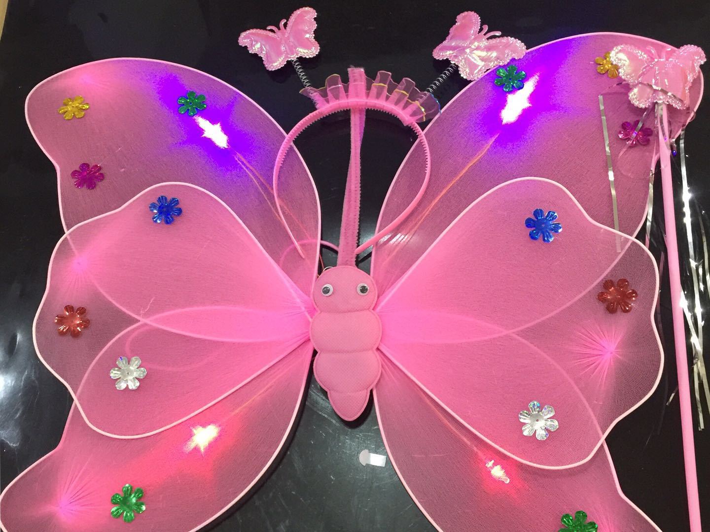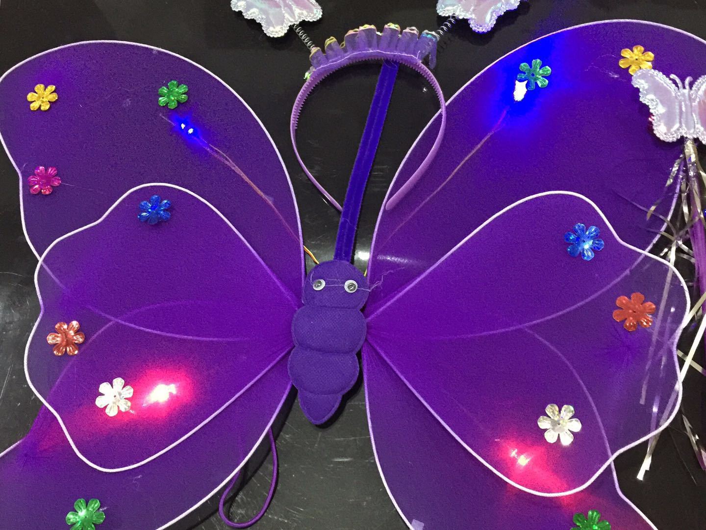 Declaration... The colorful light-emitting butterfly wings require 2 AA batteries, and other styles include electronic components.