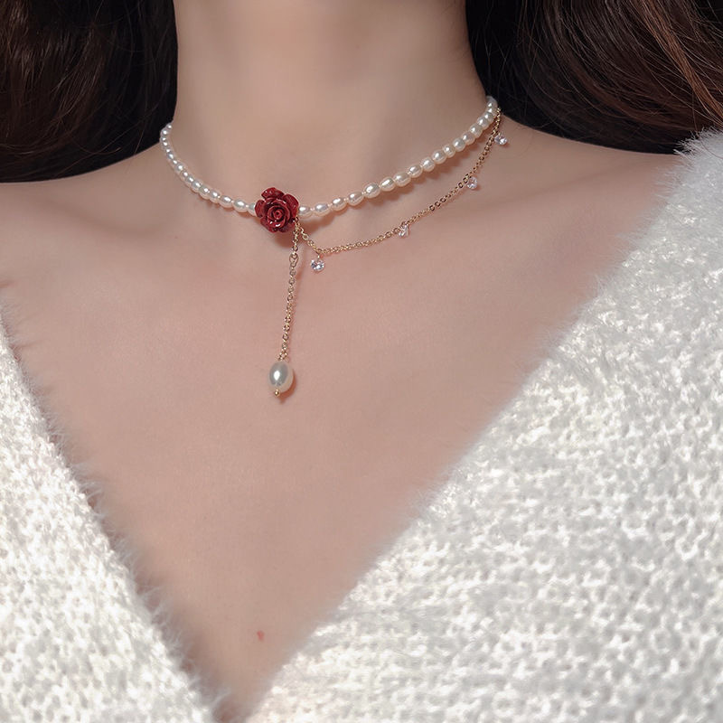 red rose pearl necklace