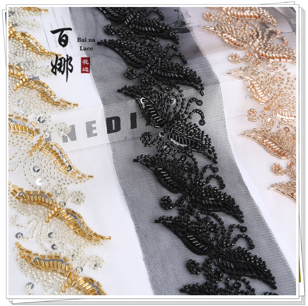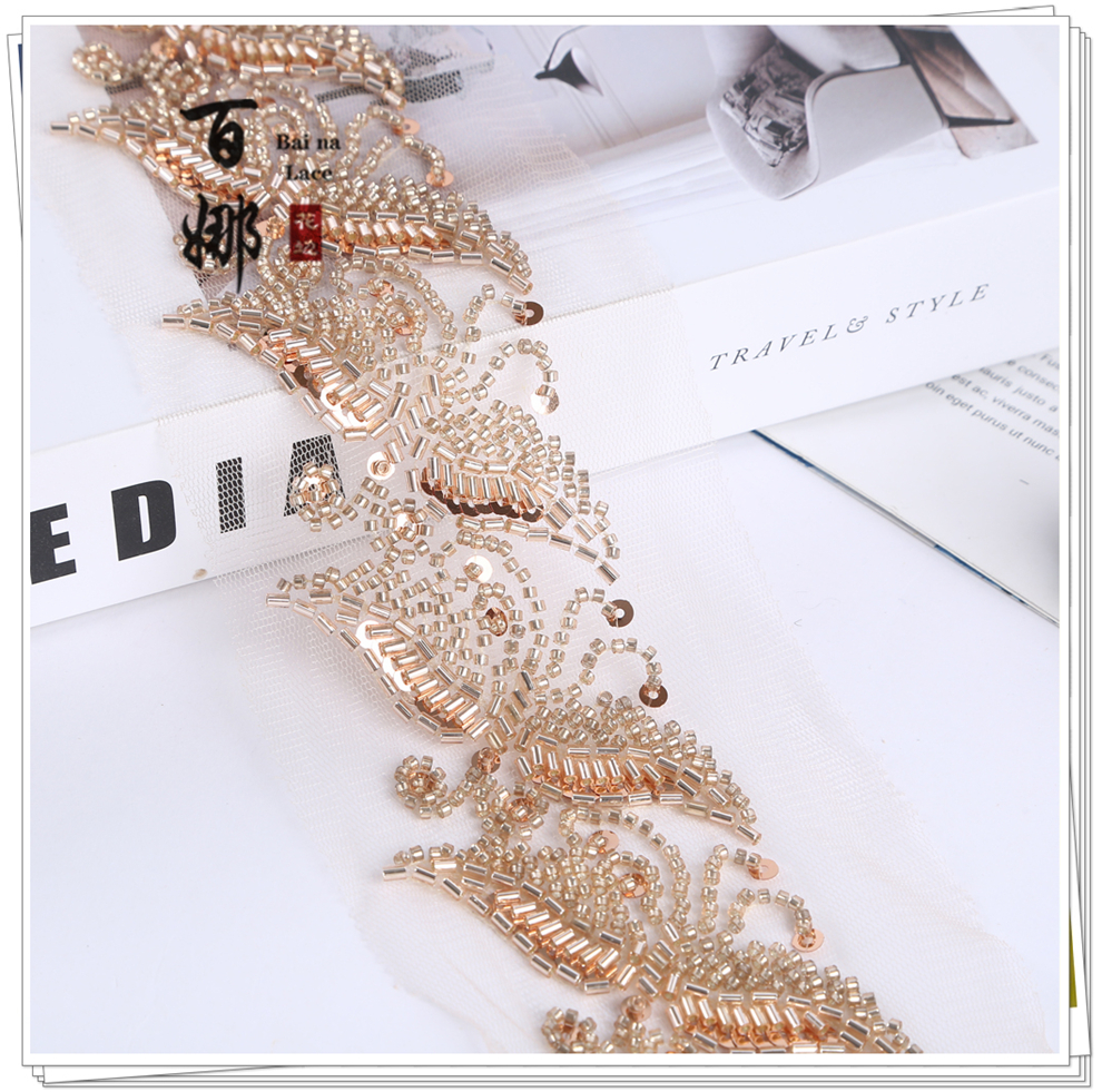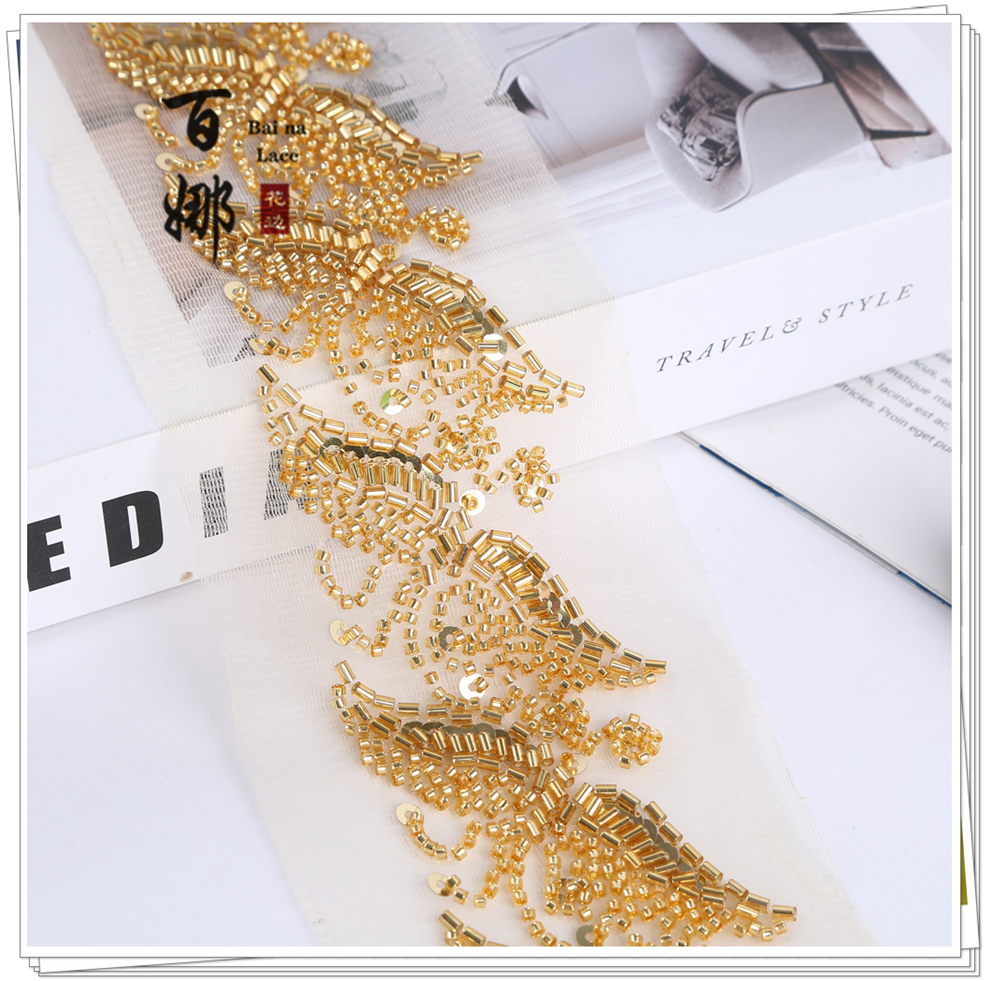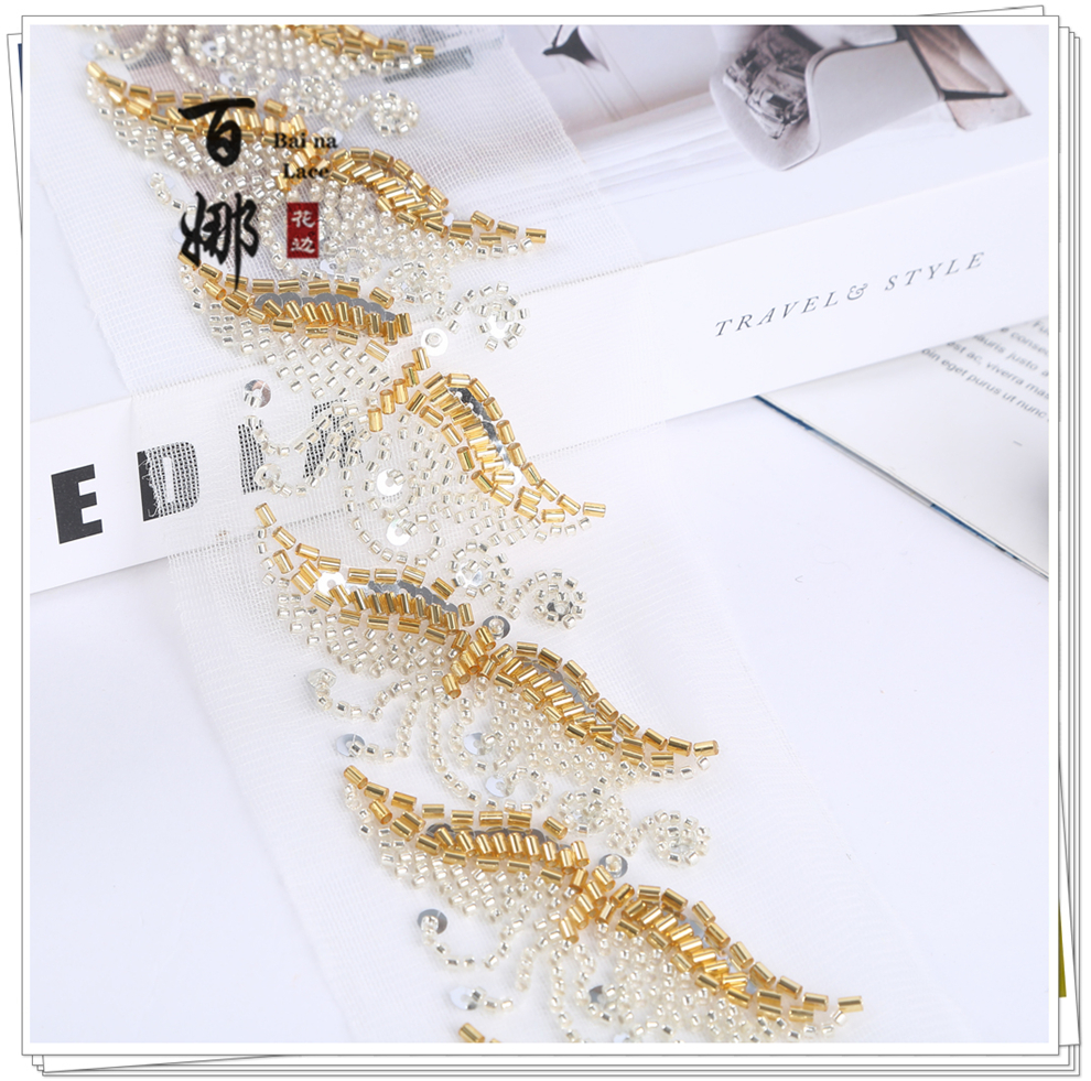 Product Name: Lace Handmade DIY Material Hanfu Wedding Dress Weaving Band BNH3509 Heavy Work Hook Needle Beading Edge