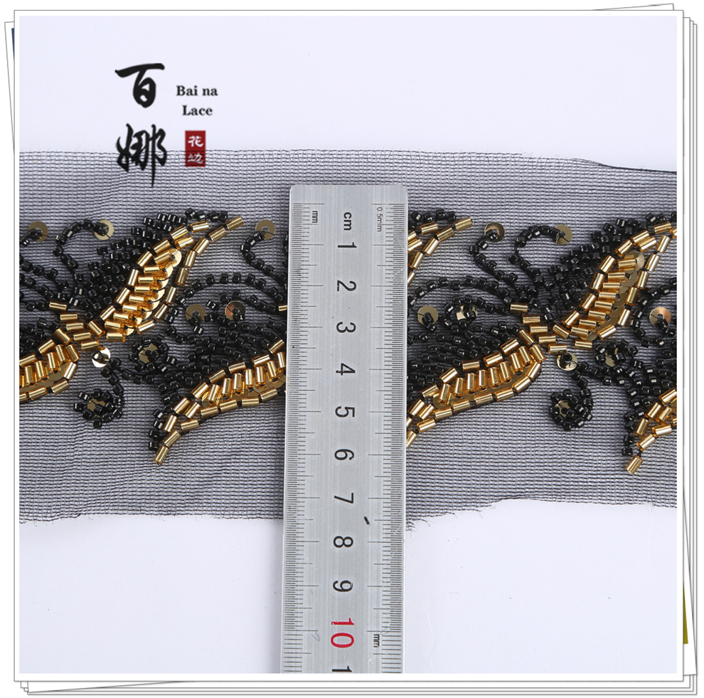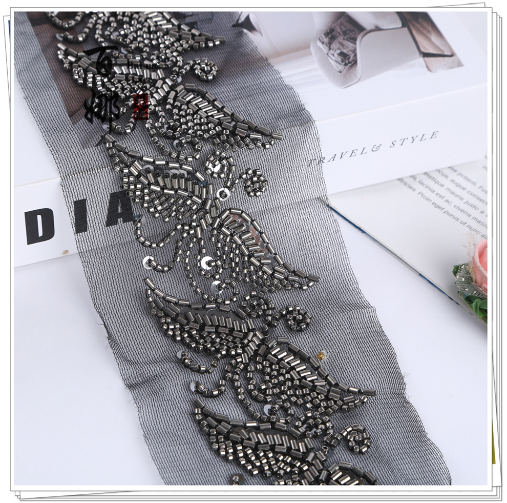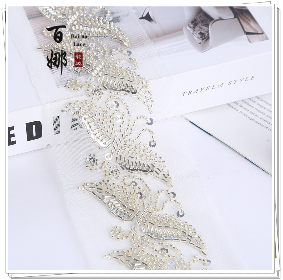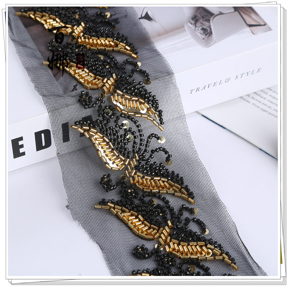 Product Name: Lace Handmade DIY Material Hanfu Wedding Dress Weaving Band BNH3509 Heavy Work Hook Needle Beading Edge