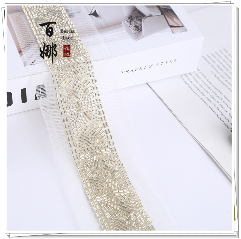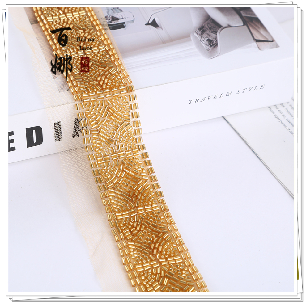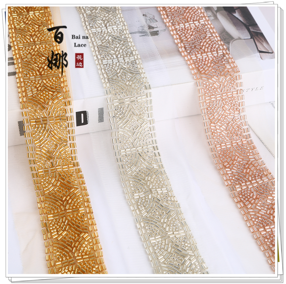 Product Name: 4cm Wide Beaded Tube Sequins Lace Edge Dense Lace Flower Edge Garment Wedding Decorative Net Fabric Accessory Weaving Belt Direct Factory Supply
