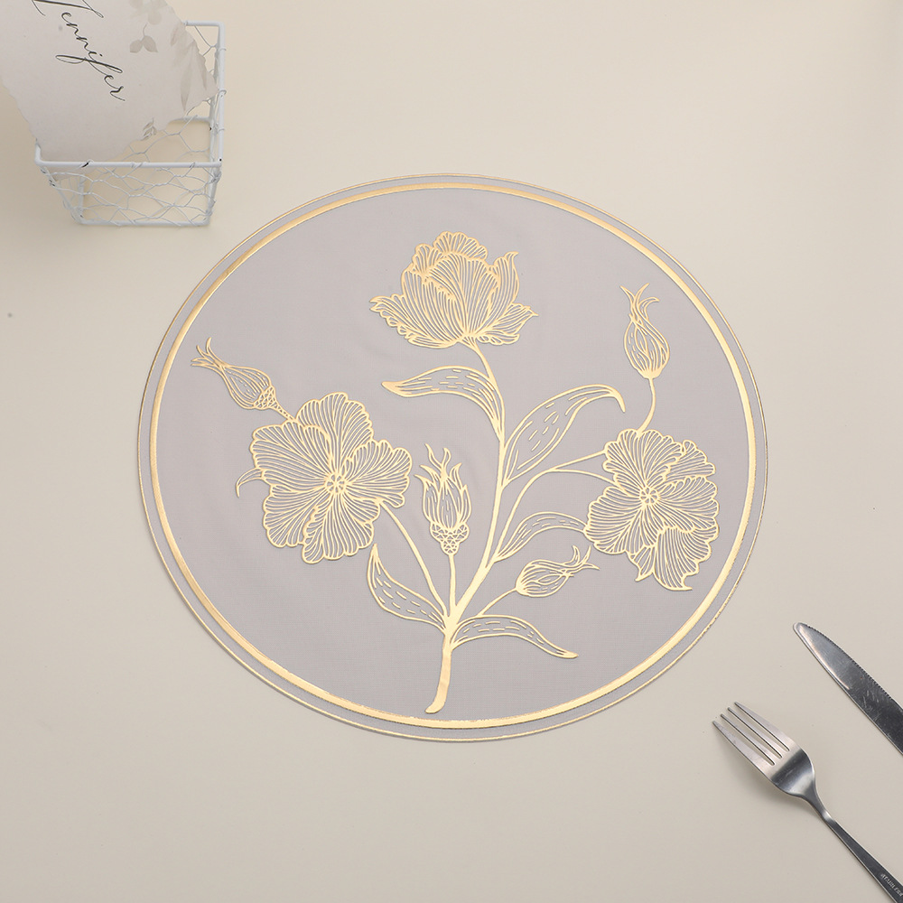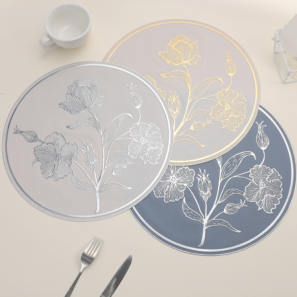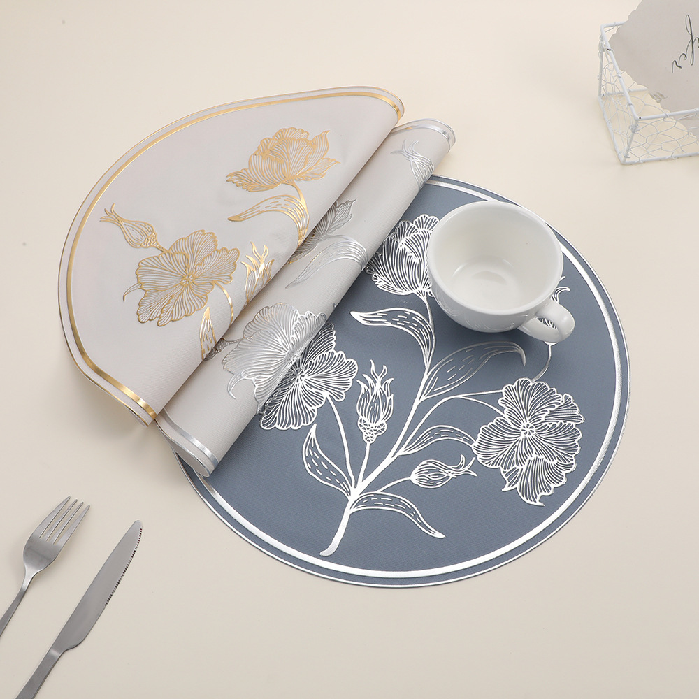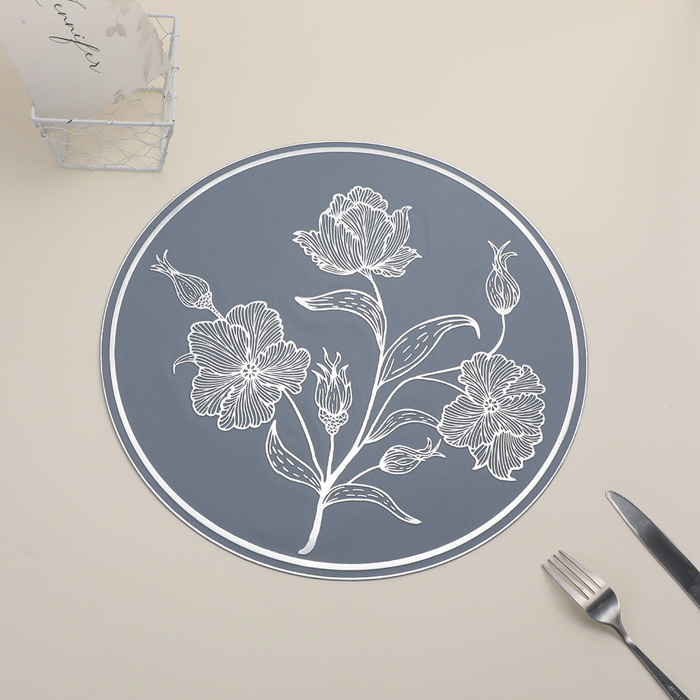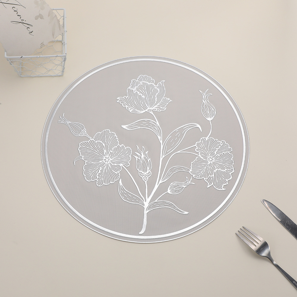 round anti-scald placemat new chinese hibiscus flower hotel waterproof cup mat high sense restaurant tableware heat proof mat