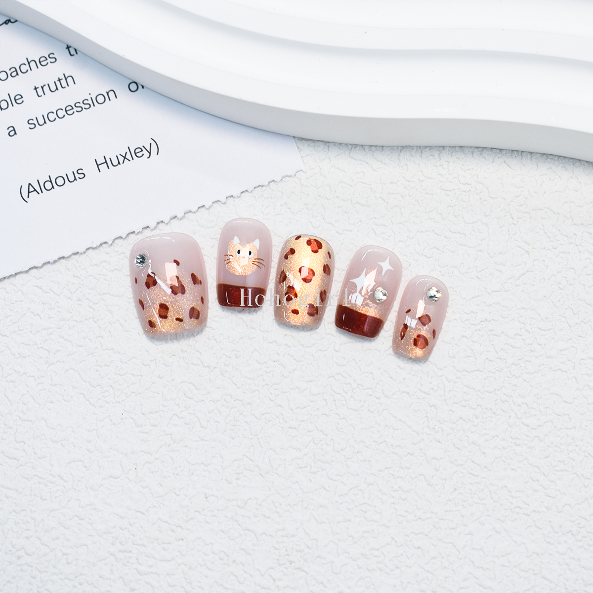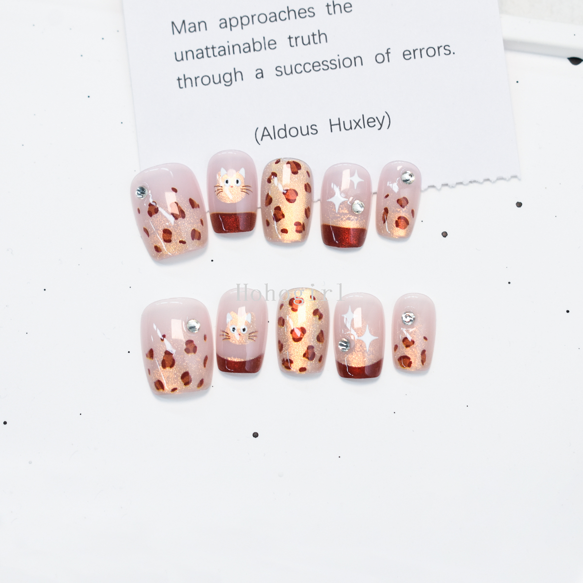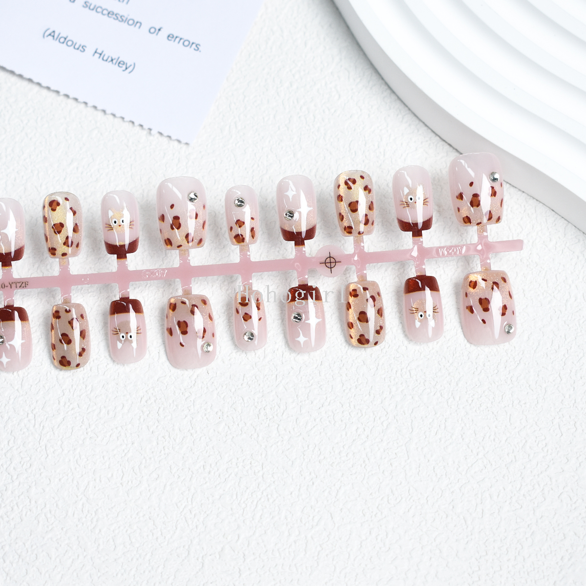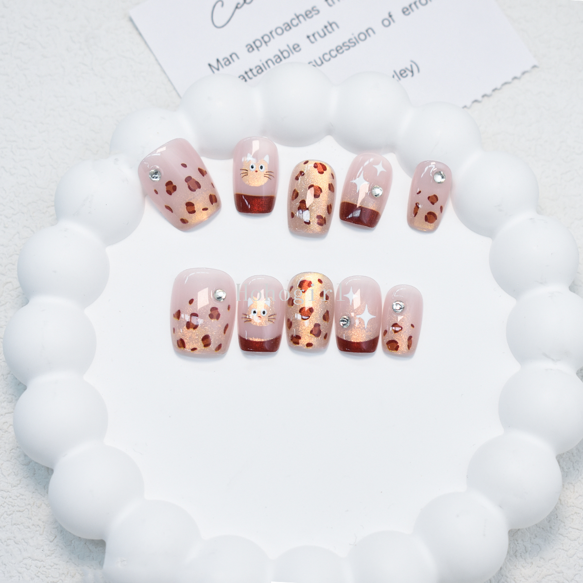 30 pieces handmade armor wear armor fake nails nail sticker leopard print short ladder eye french style 中文版