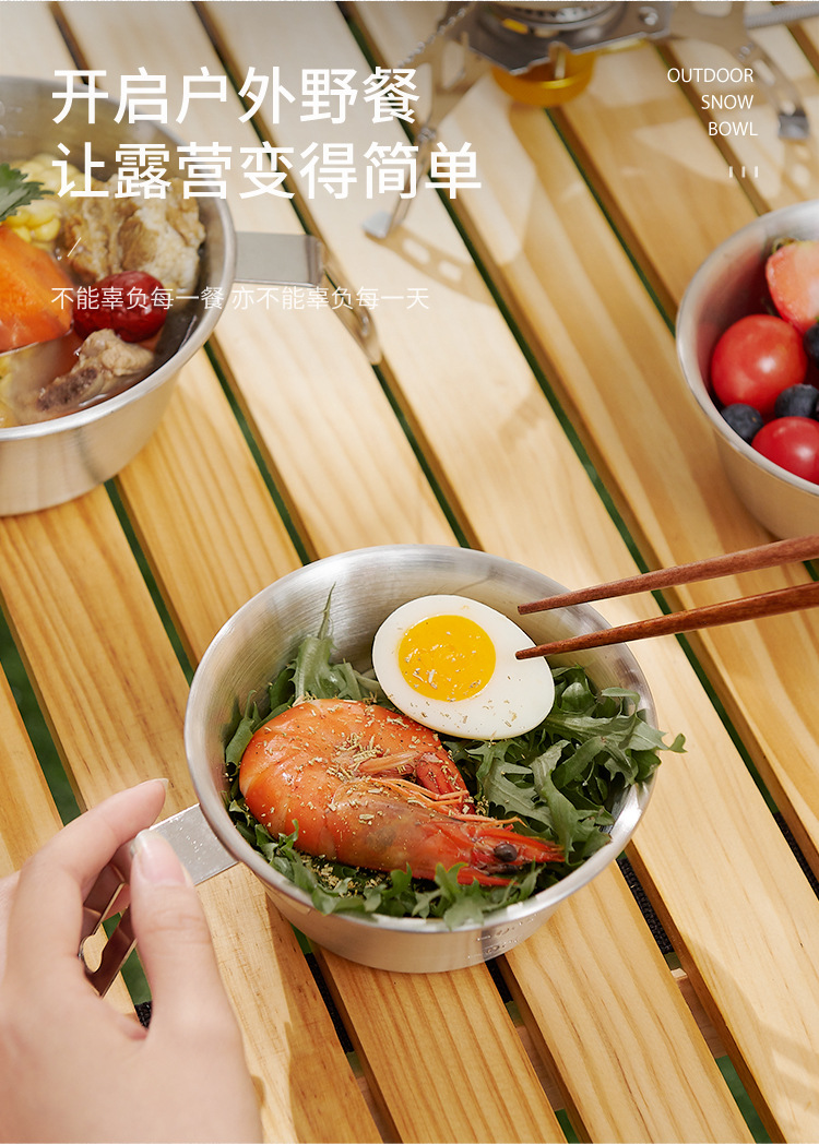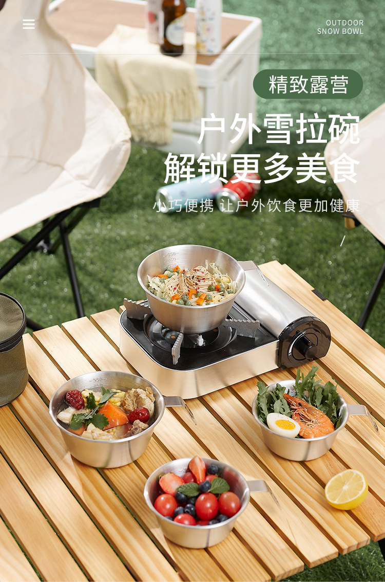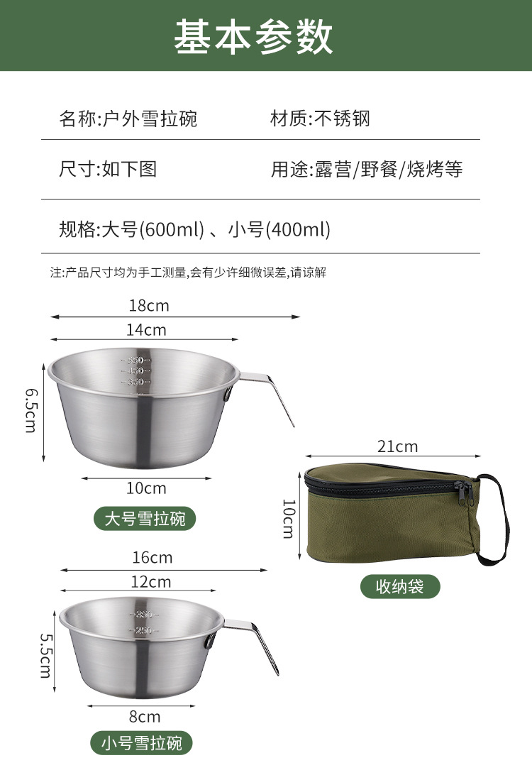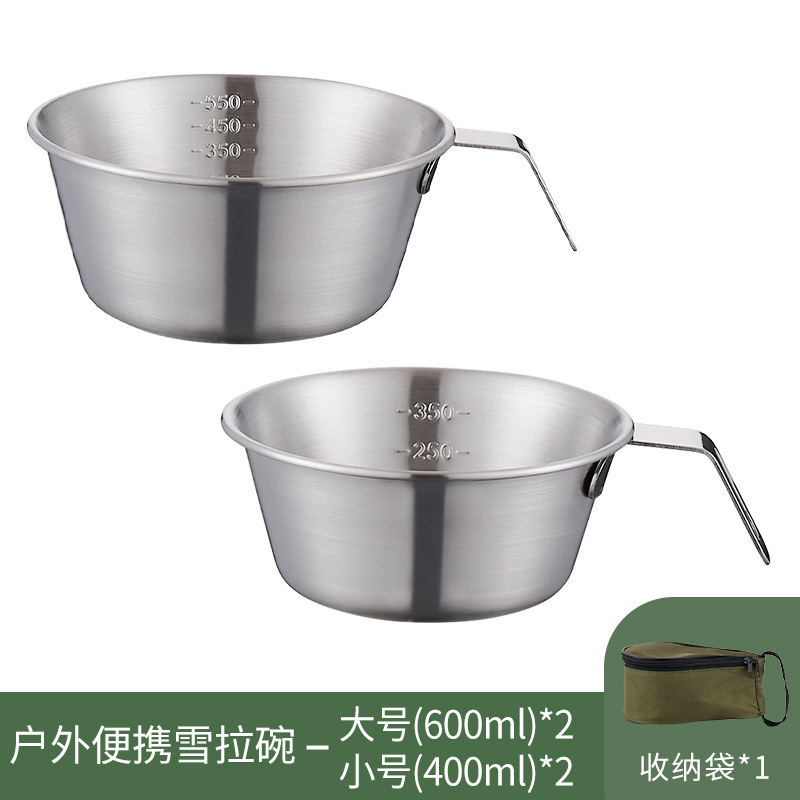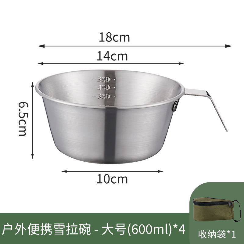 | 304 600ml * 4 steel plate handle salad bowl + khaki buggy bag | ¥54.0 | 1000 piece available |