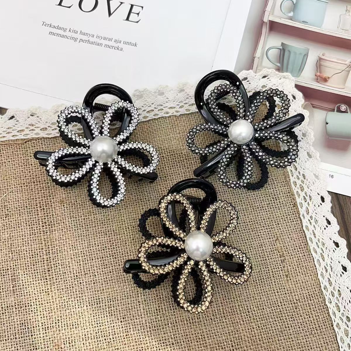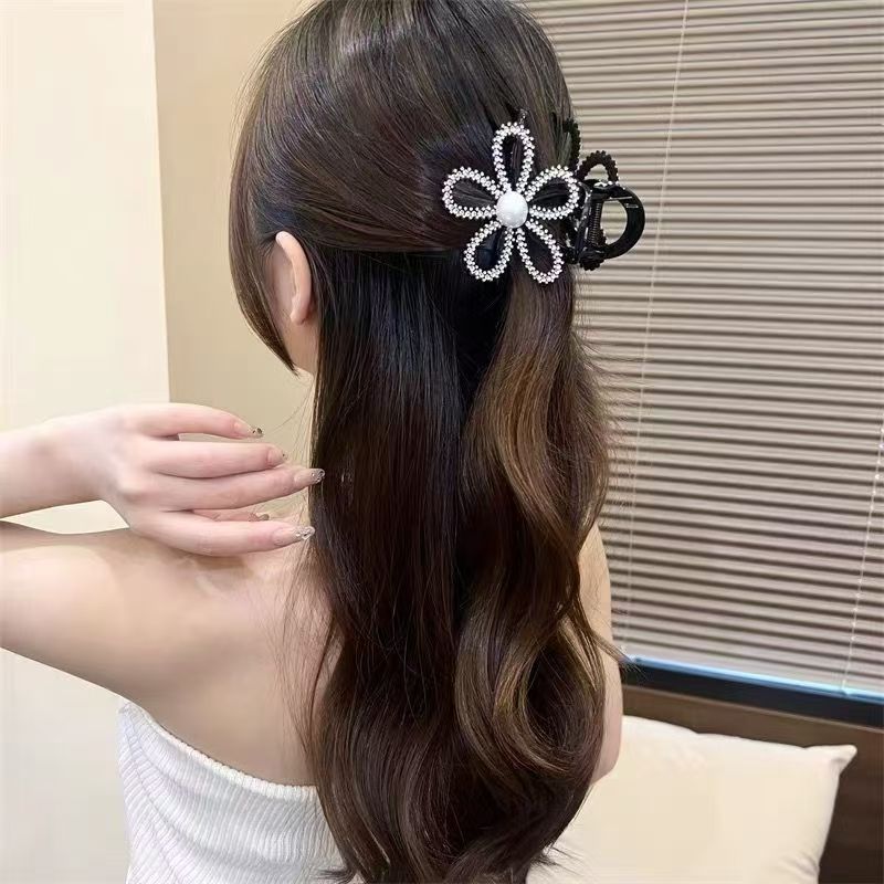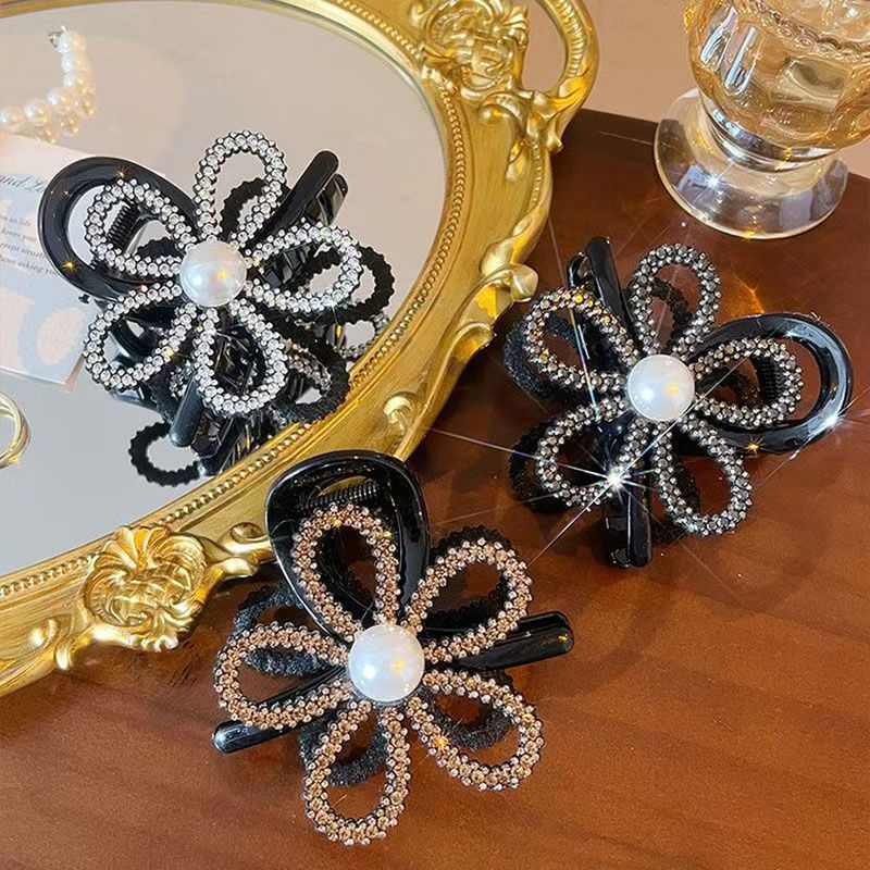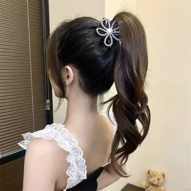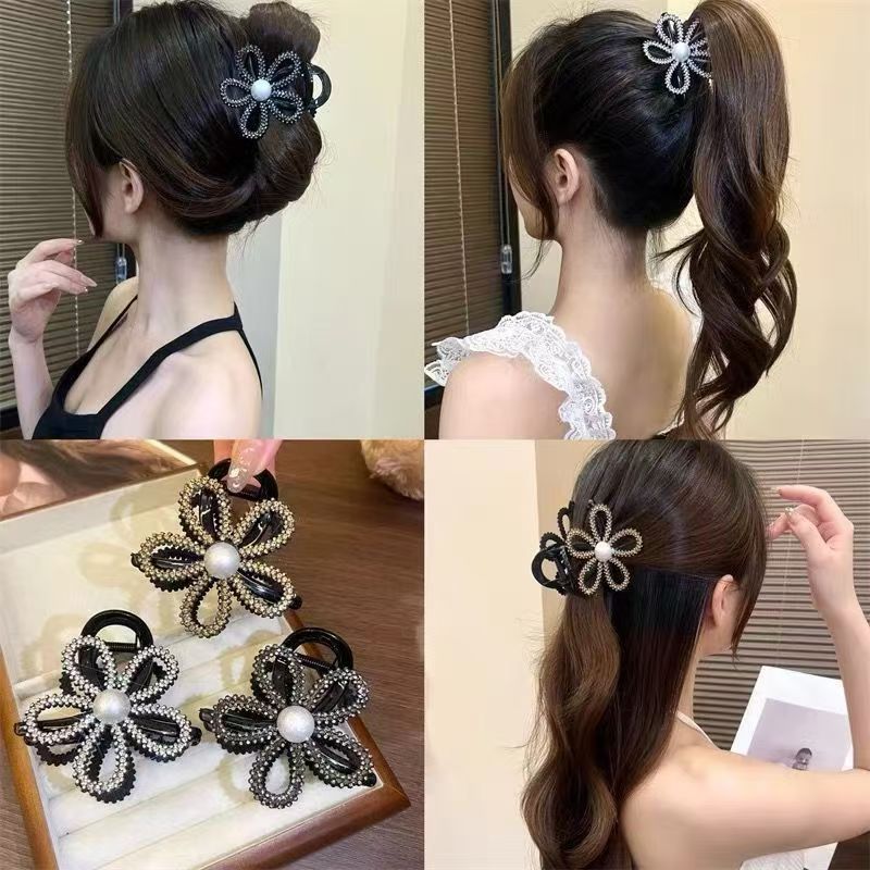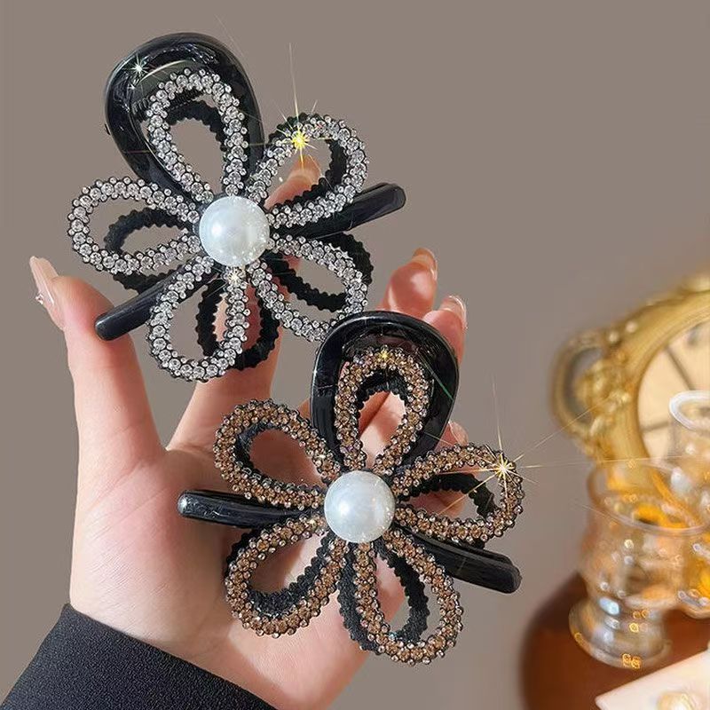 2024 new korean style light luxury rhinestone hollow flower hair clip back head updo shark clip high ponytail clip 中文版