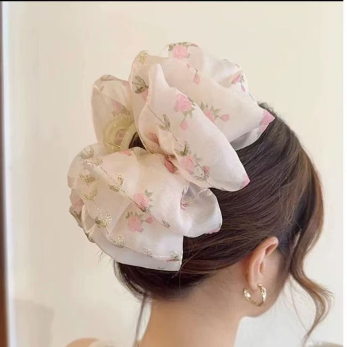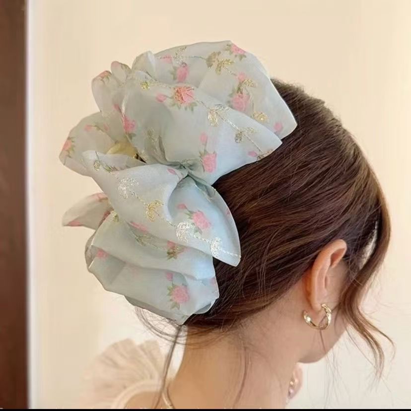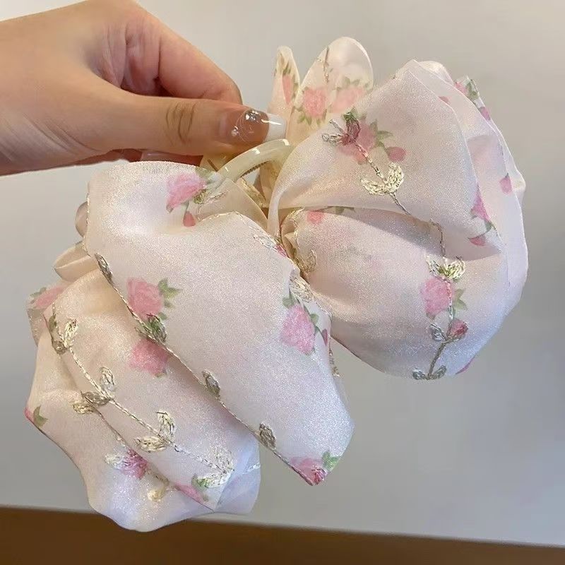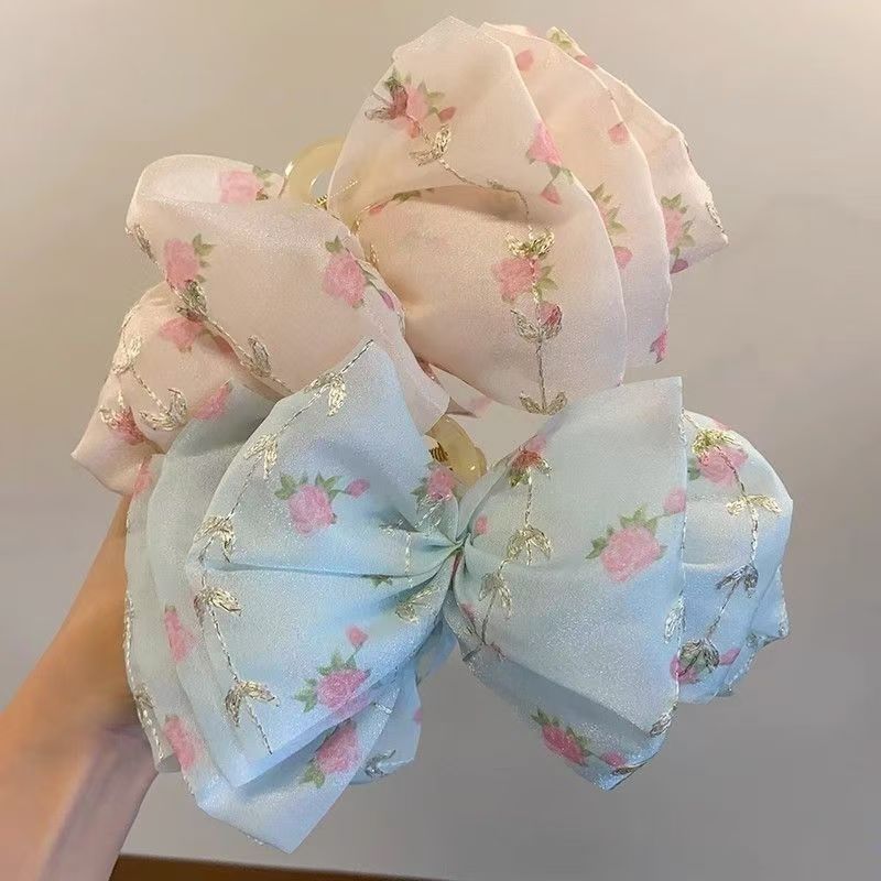2024 new floral cloud temperament shark clip updo hair claw women's large bow barrettes back clip 中文版